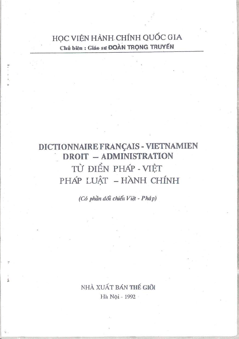 Từ điển Pháp - Việt: Pháp luật – Hành chính | Trường Đại học Luật, Đại học Quốc gia Hà Nội
