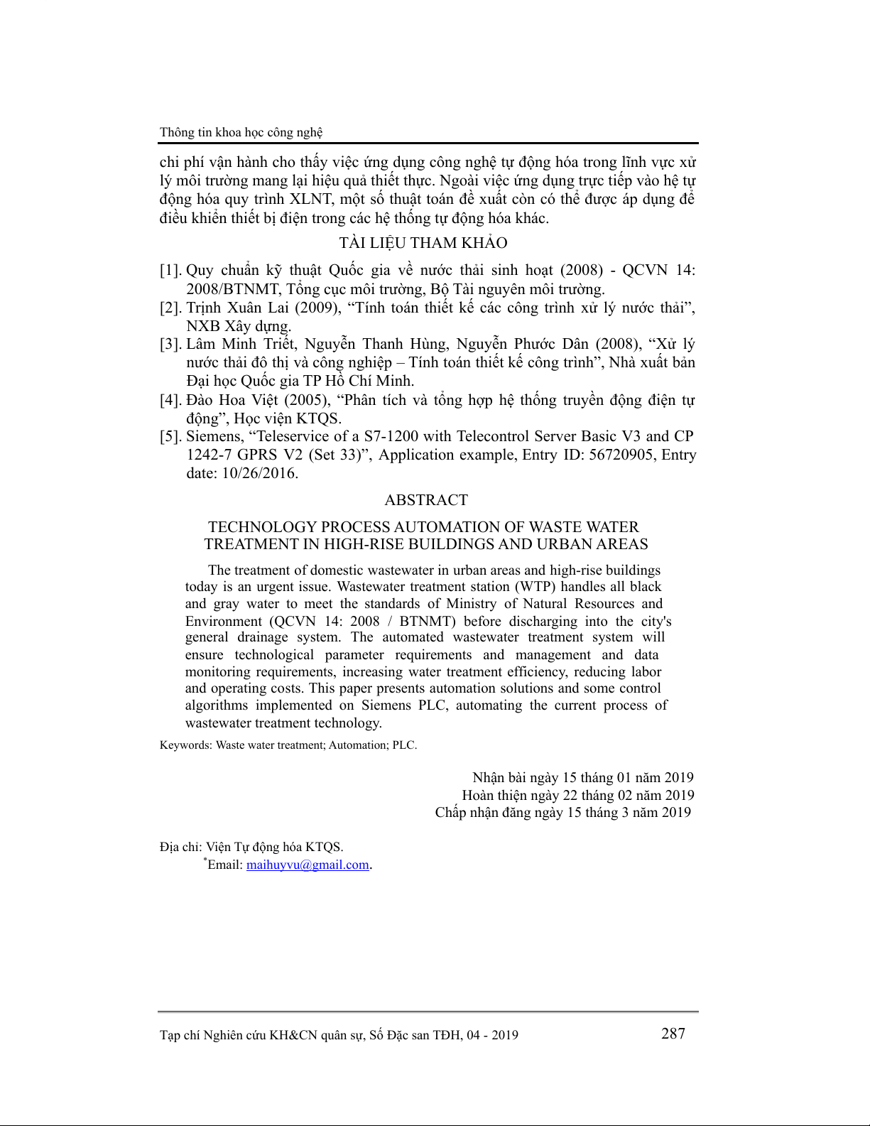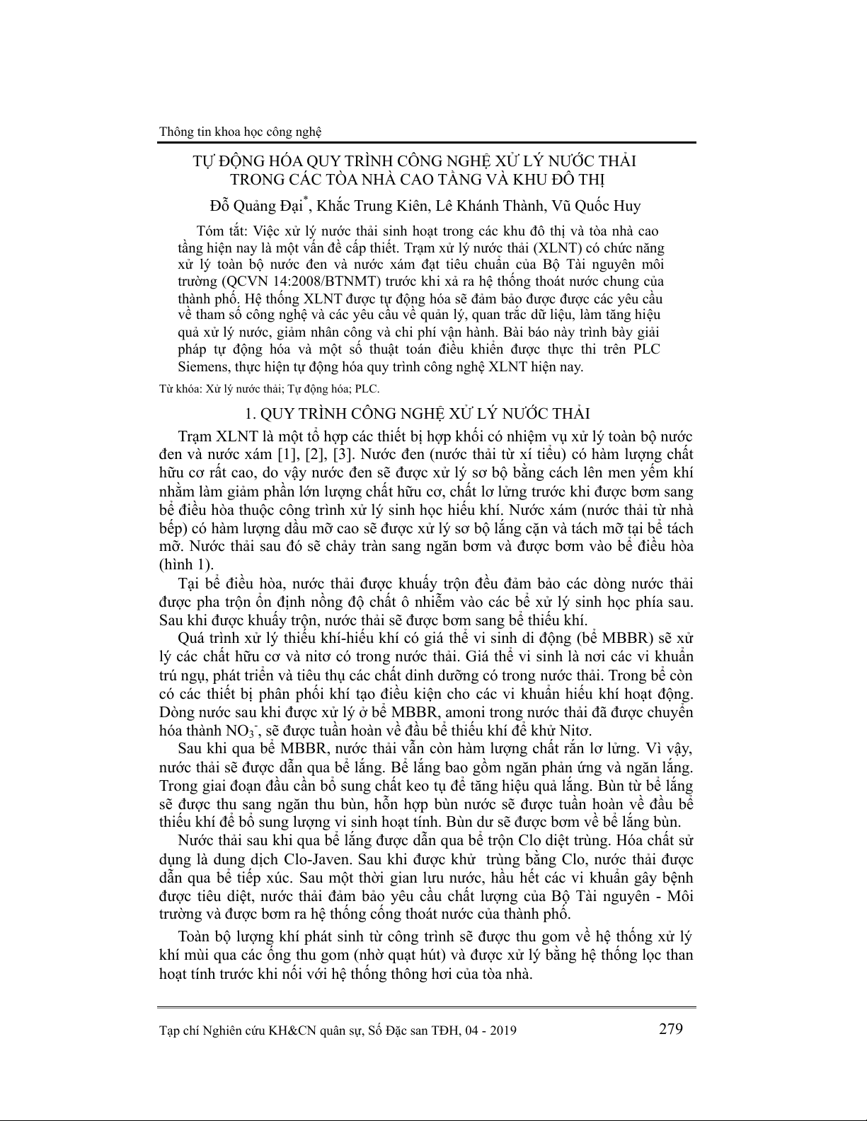 . Q. Đại, …, V. Q. Huy,“Tự động hóa quy trìn h công nghệ xử lý nước … và khu đô th ị.”