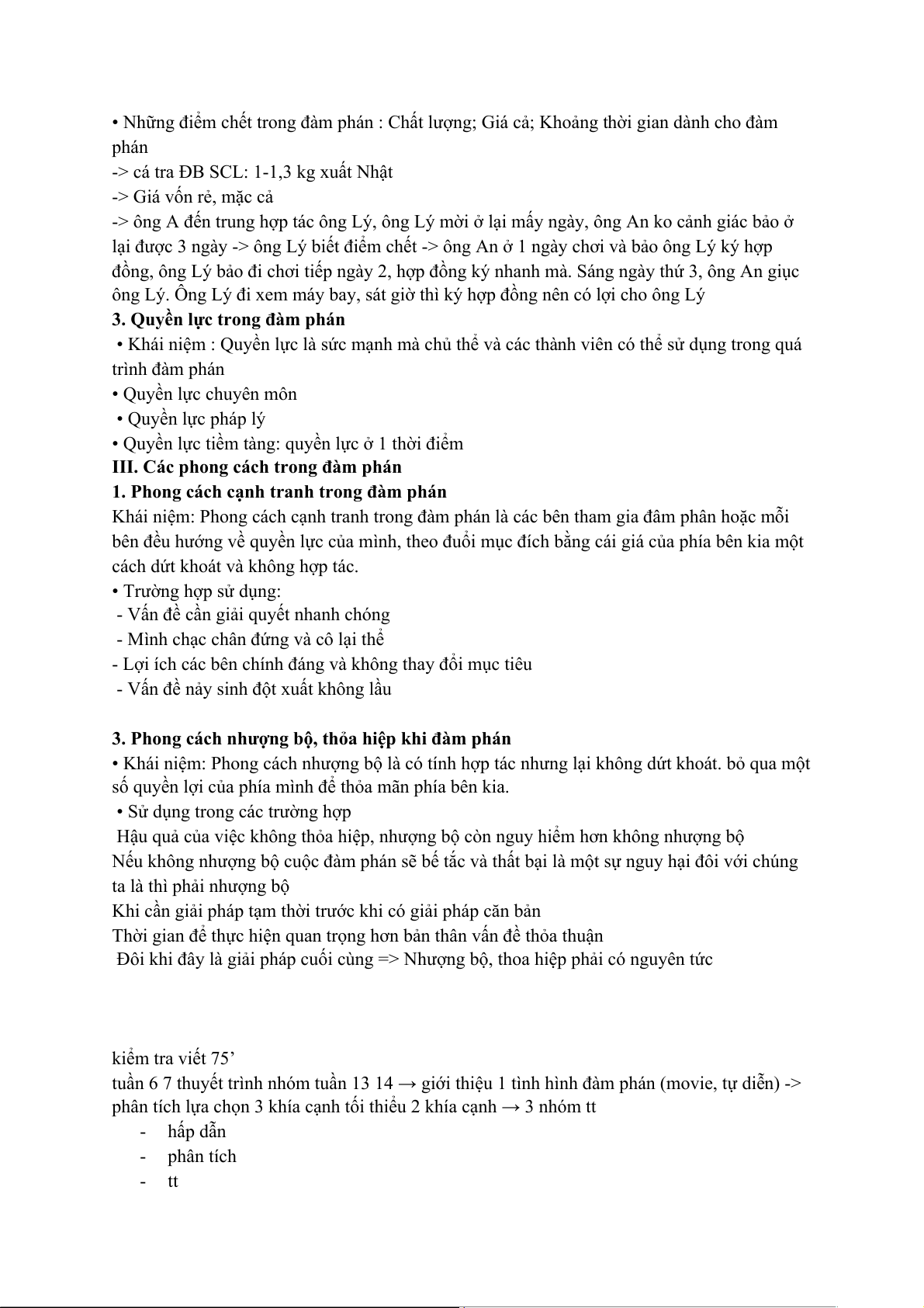 tuần 6 7 thuyết trình nhóm tuần 13 14 → giới thiệu 1 tình hình đàm phán (movie, tự diễn) ->