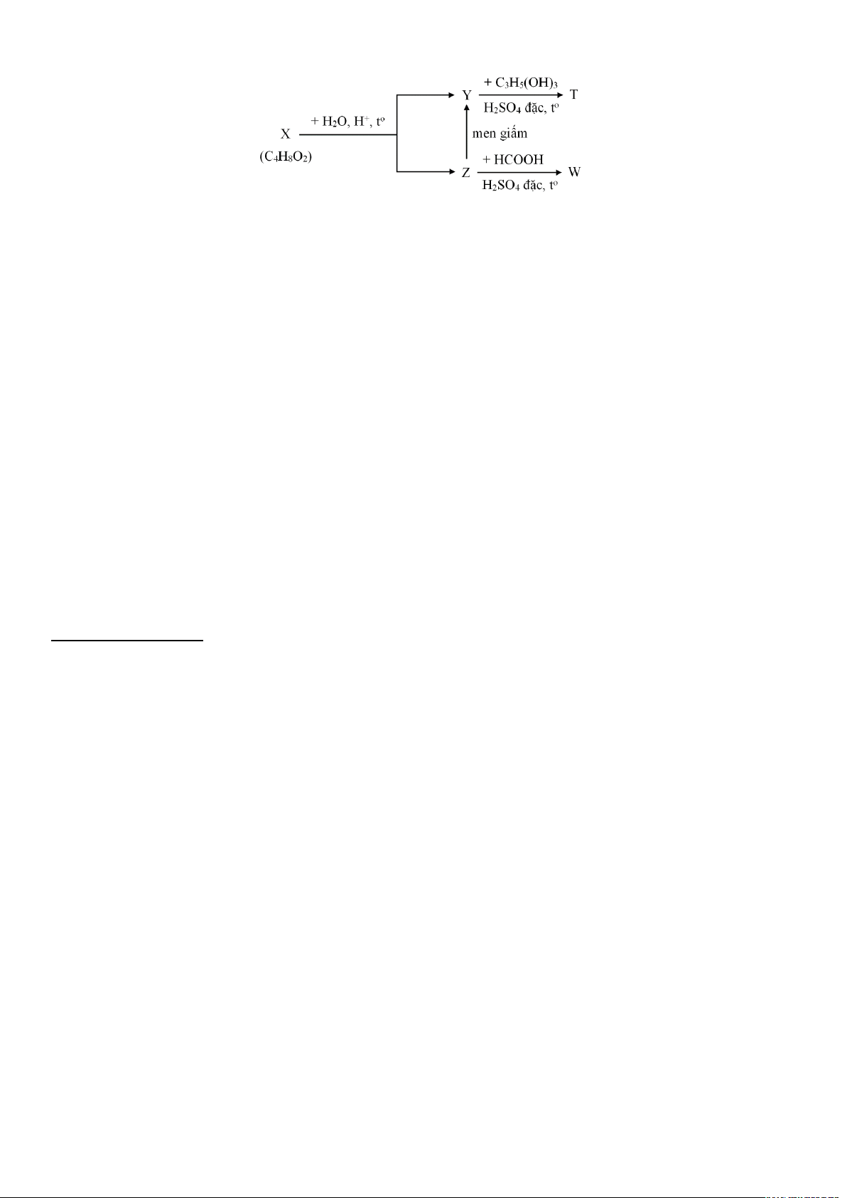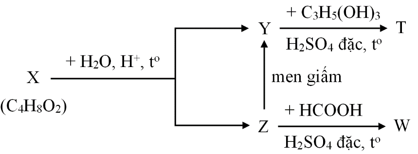 Biết rằng X, Y, Z, T, W là các hợp chất hữu cơ khác nhau; T chỉ chứa một loại nhóm chức.