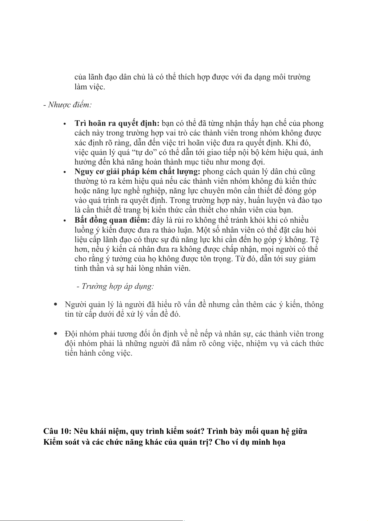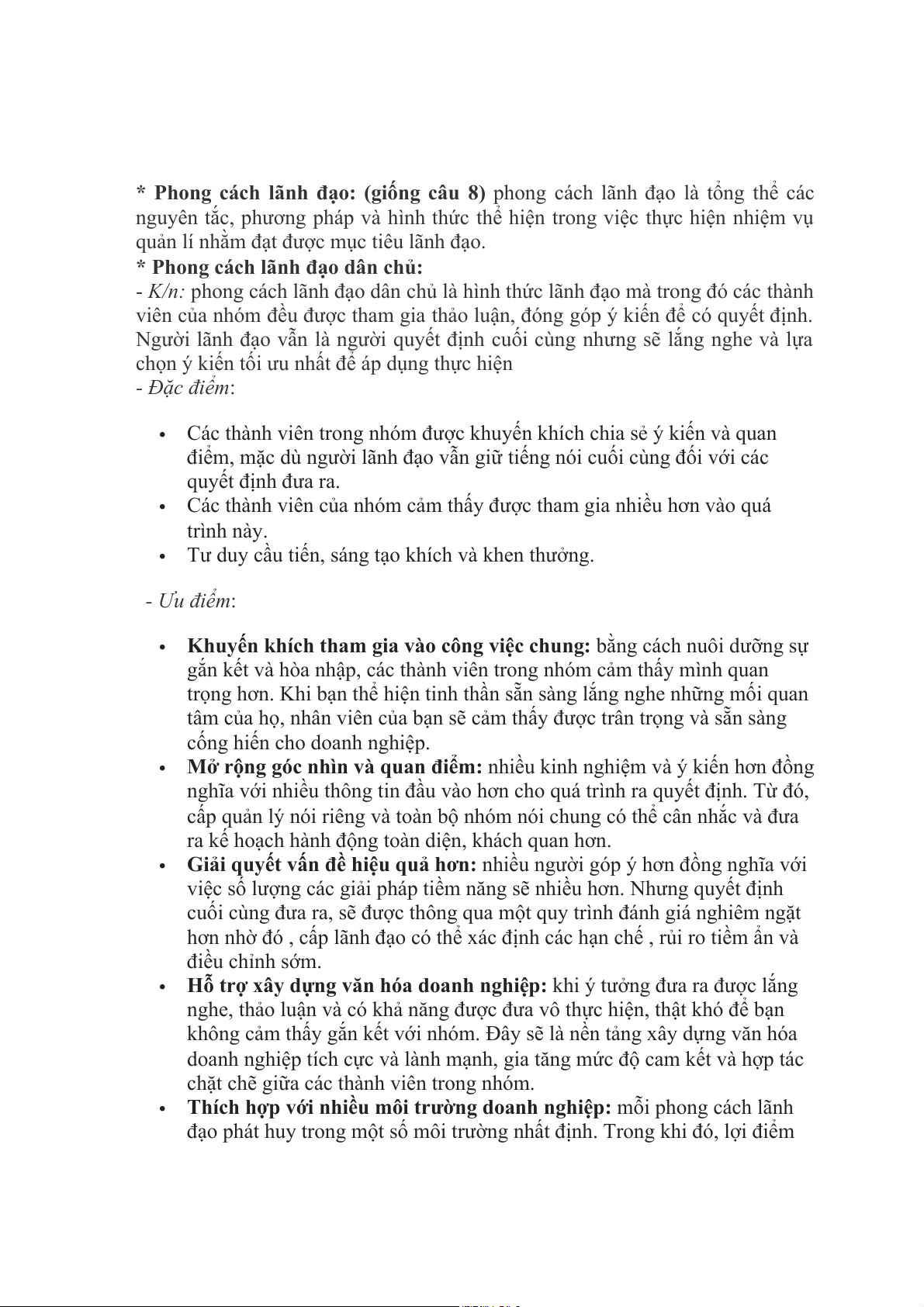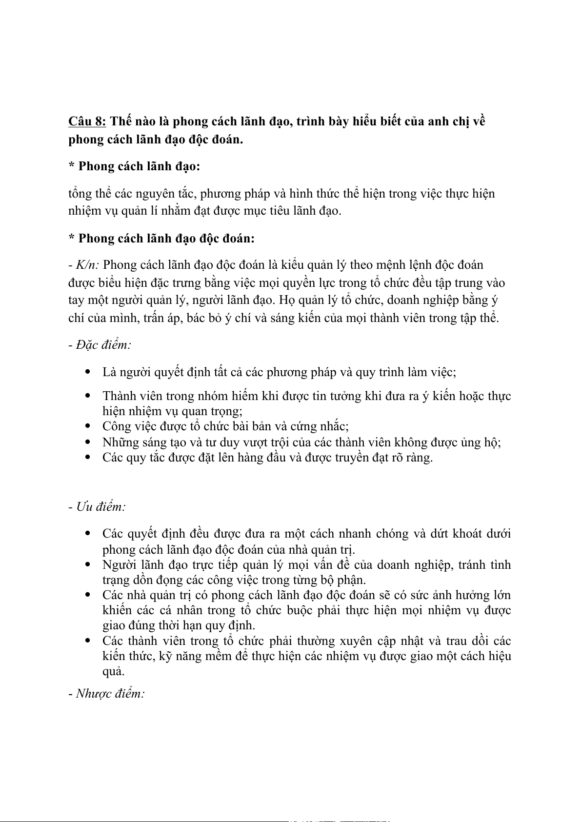 * Phong cách lãnh đạo: (giống câu 8) phong cách lãnh đạo là tổng thể các