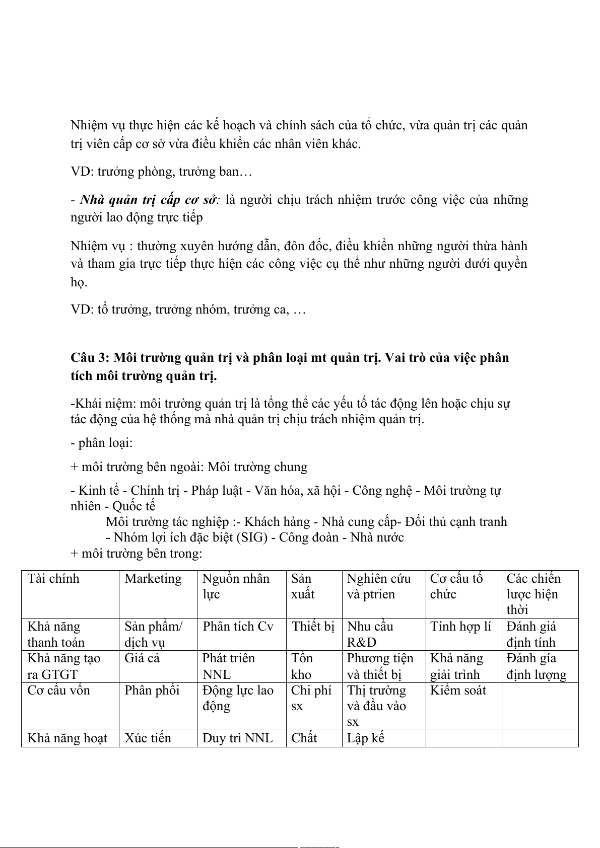 Câu 3: Môi trường quản trị và phân loại mt quản trị. Vai trò của việc phân