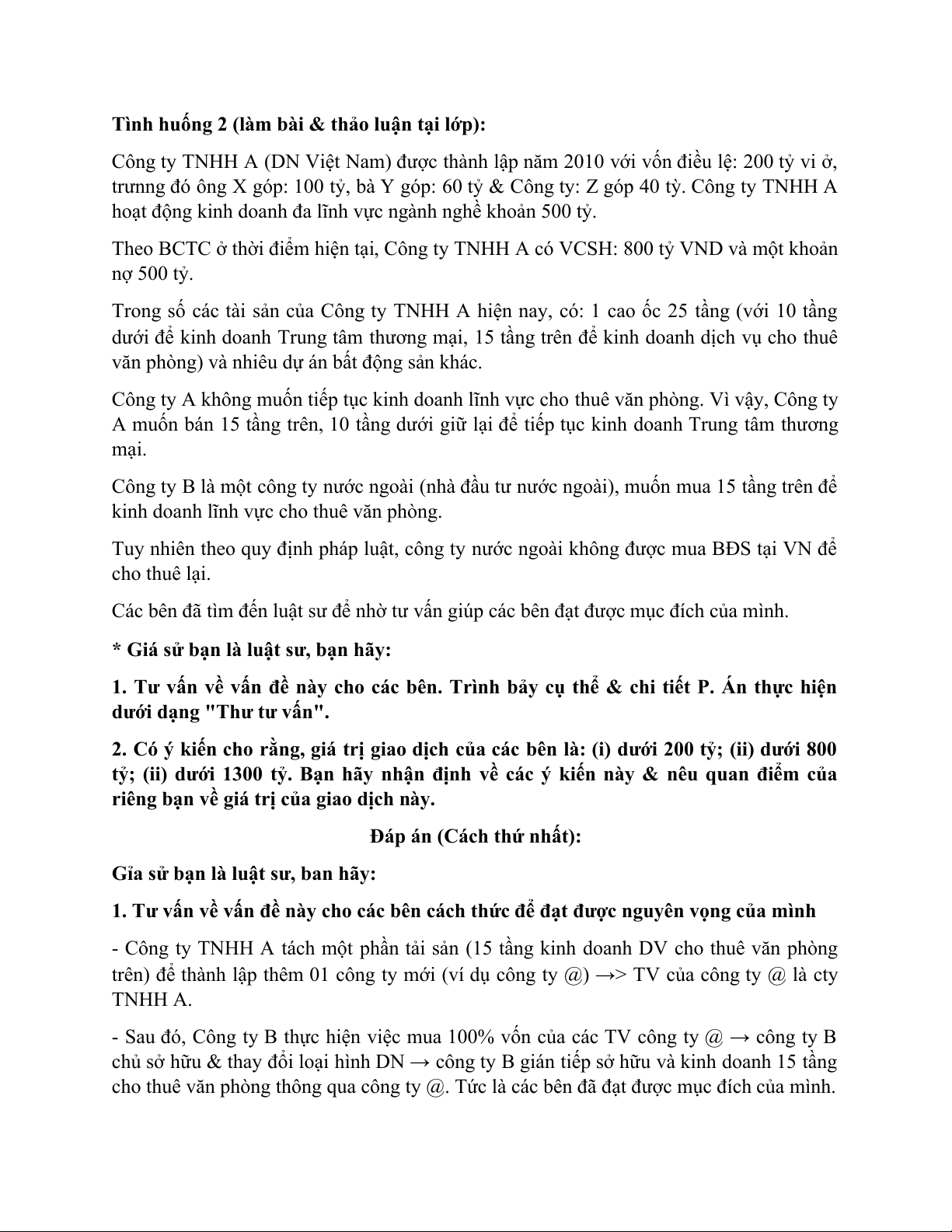Công ty TNHH A (DN Việt Nam) được thành lập năm 2010 với vốn điều lệ: 200 tỷ vi ở,