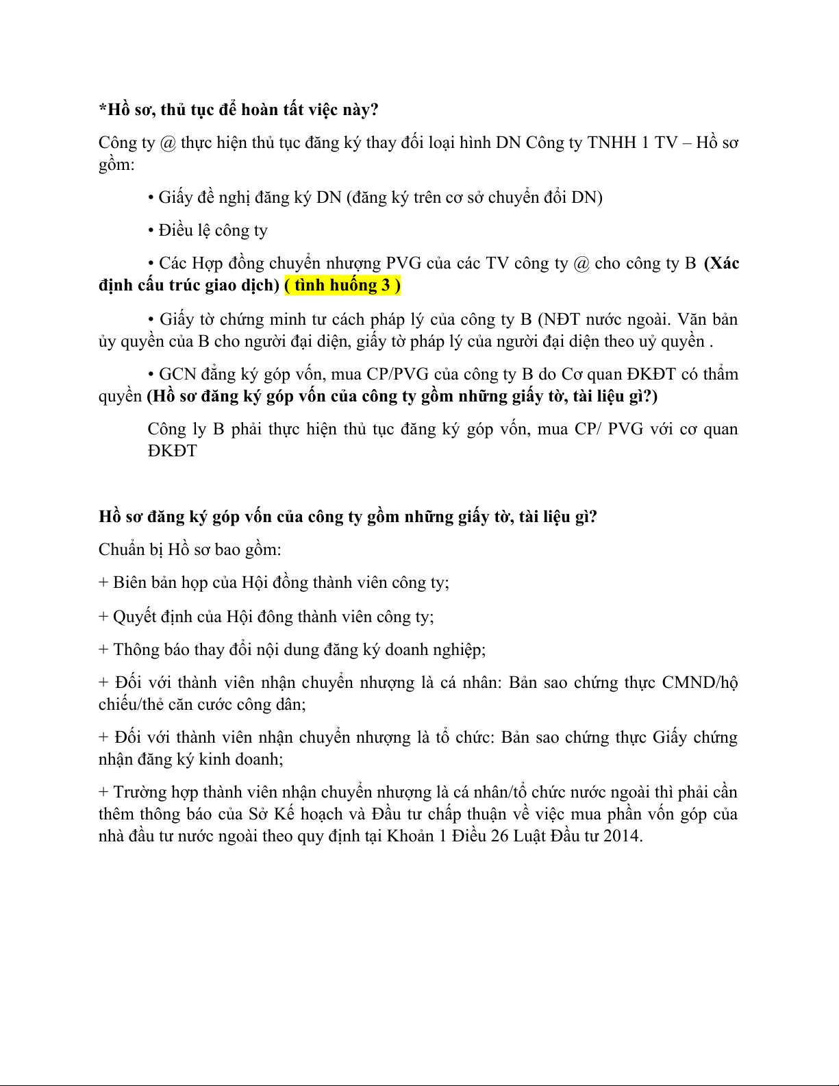 1. Xác định cấu trúc giao dịch của thương vụ này? Thủ tục, hồ sơ để hoàn tất