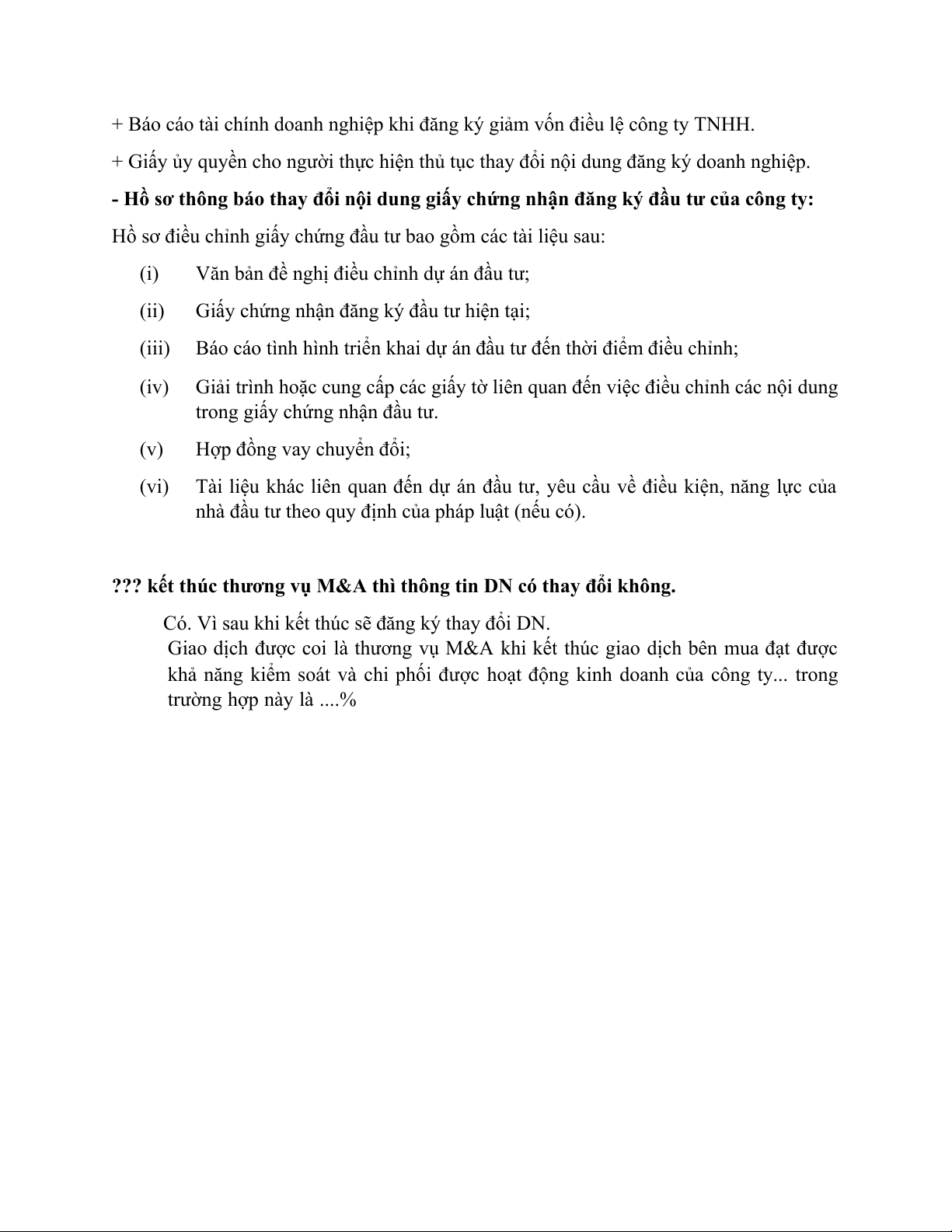 ??? kết thúc thương vụ M&A thì thông tin DN có thay đổi không.