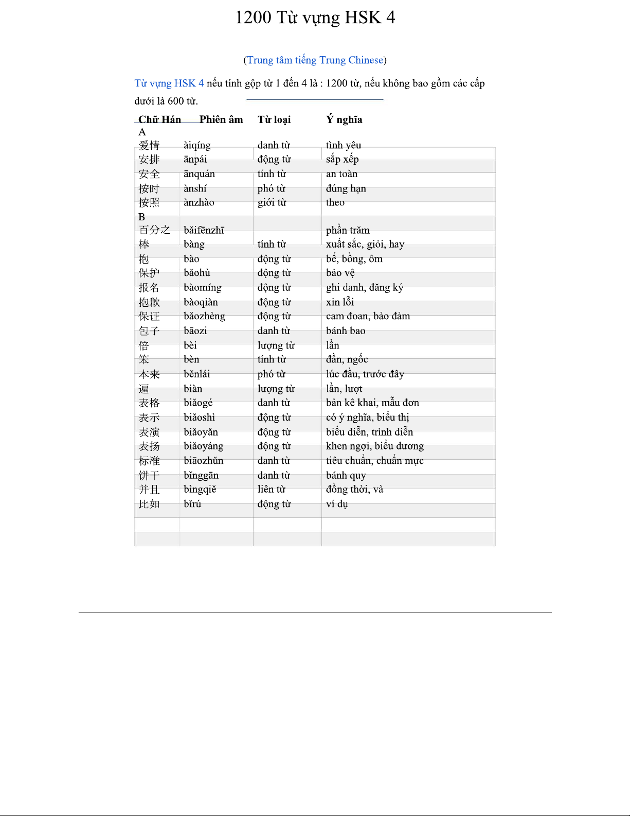 Từ vựng HSK 4 - 1200 Từ vựng Quan trọng cho HSK 4