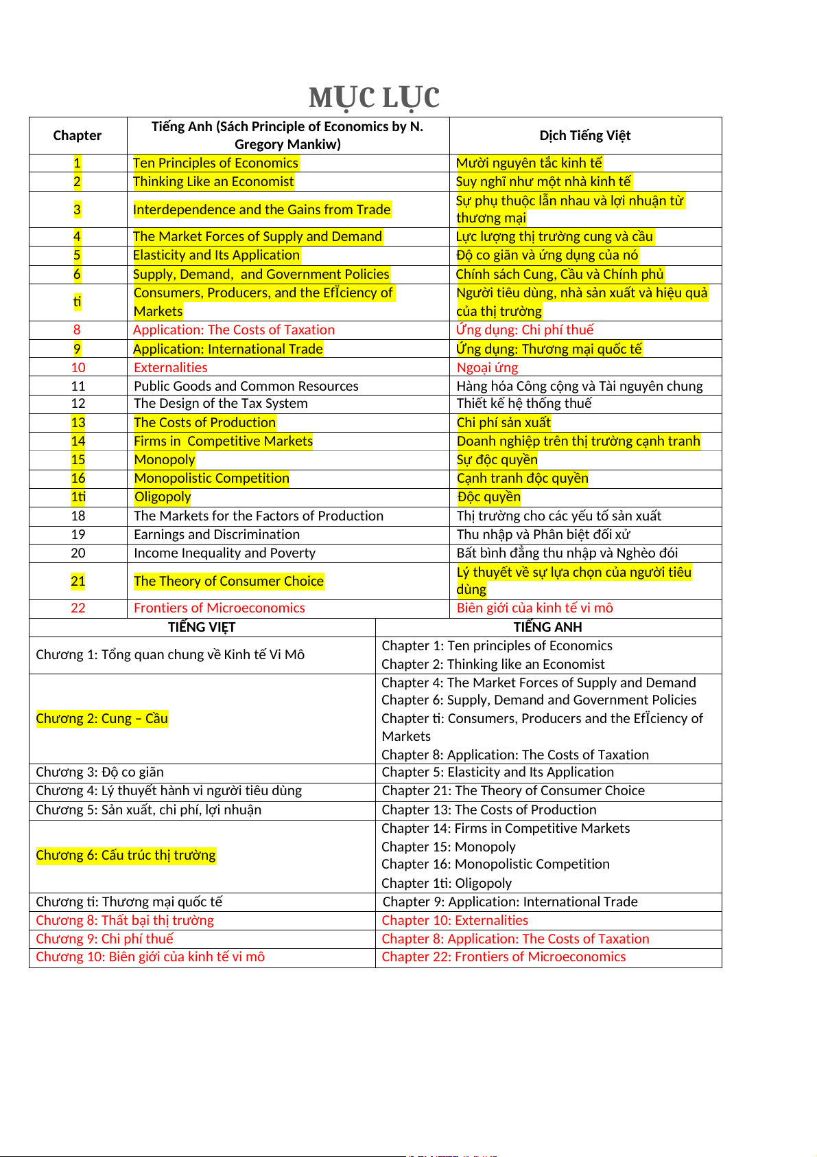 GIÁO TRÌNH S D Ử NG Ụ Kinh t h ế c ọ t p ậ I Principles of Economics M C Ụ L C Ụ