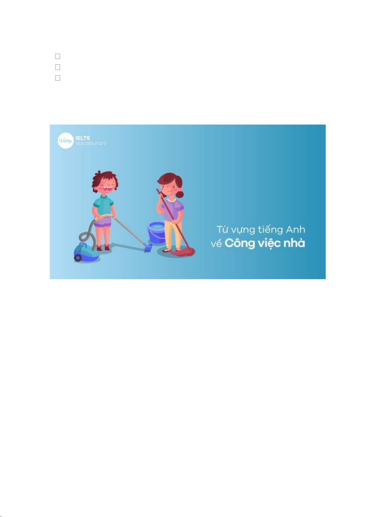• Housework: công việc nhà • Cleaning: dọn dẹp • Cooking: nấu nướng