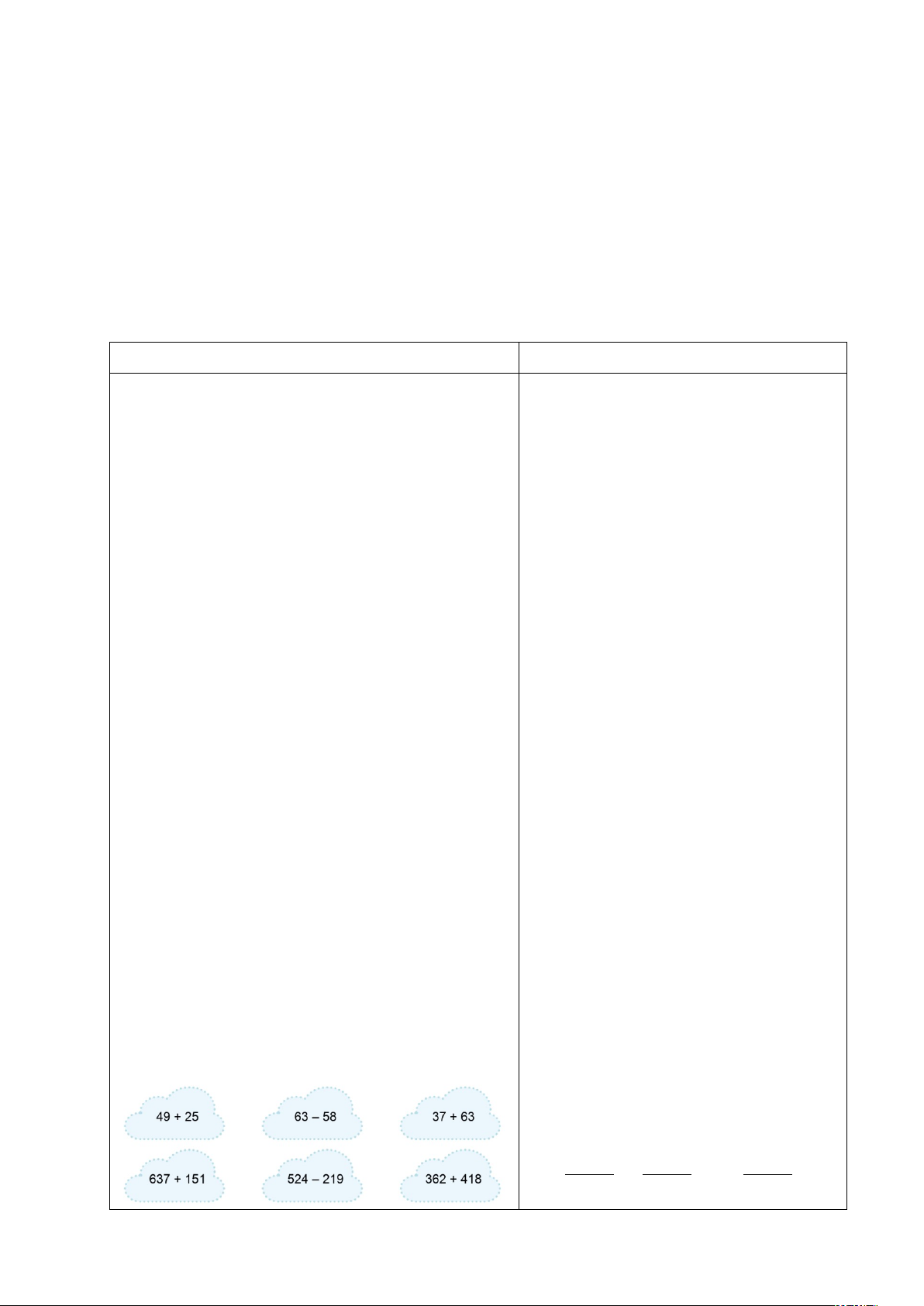 Bài 02: ÔN TẬP VỀ PHÉP CỘNG, PHÉP TRỪ TRONG PHẠM VI 1 000 (T1) I. YÊU CẦU CẦN ĐẠT