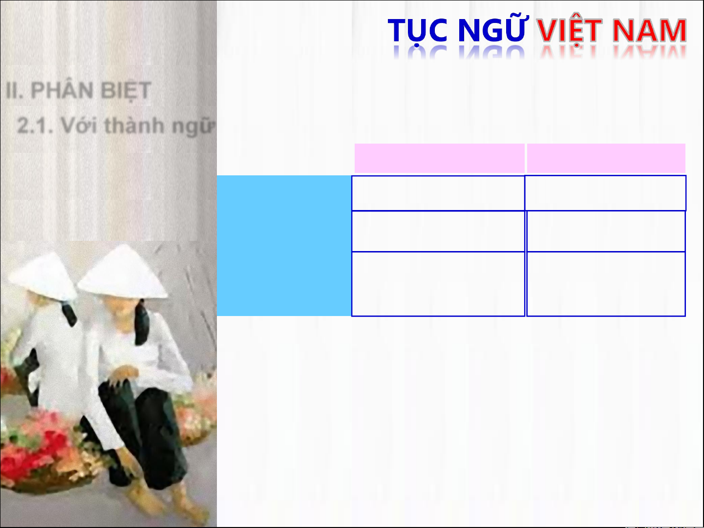 phaän töông ñöông caáp ñoä töø I . PHÂN BIỆT 2.1. Với thành ngữ THÀNH NGỮ TỤC NGỮ