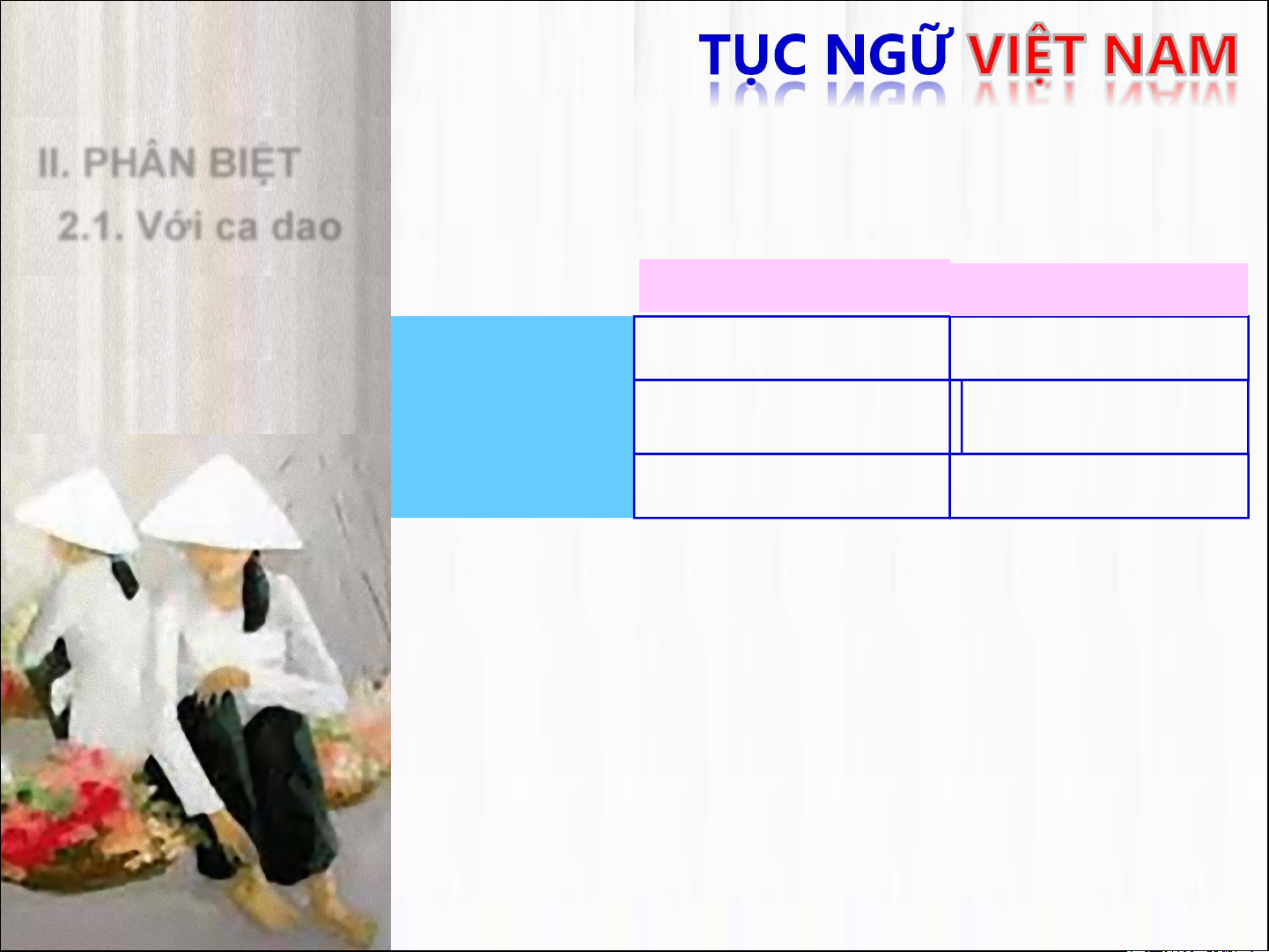 Keû aên khoâng heát, ngöôøi laàn khoâng ra.” I . PHÂN BIỆT 2.1. Với ca dao CA DAO TỤC NGỮ