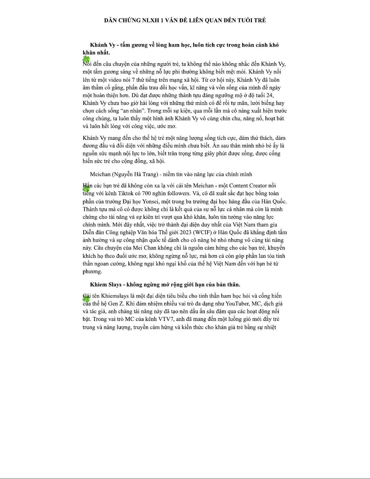 TƯỞNG NIỆM NGHỊ LỰC TRẺ VÀ CÁC GƯƠNG MẶT XUẤT SẮC NLXH 1