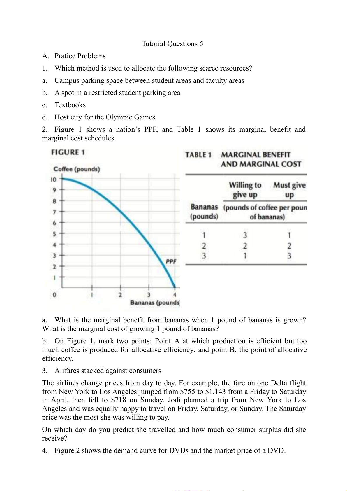 2. Figure 1 shows a nation’s PPF, and Table 1 shows its marginal benefit and marginal cost schedules.
