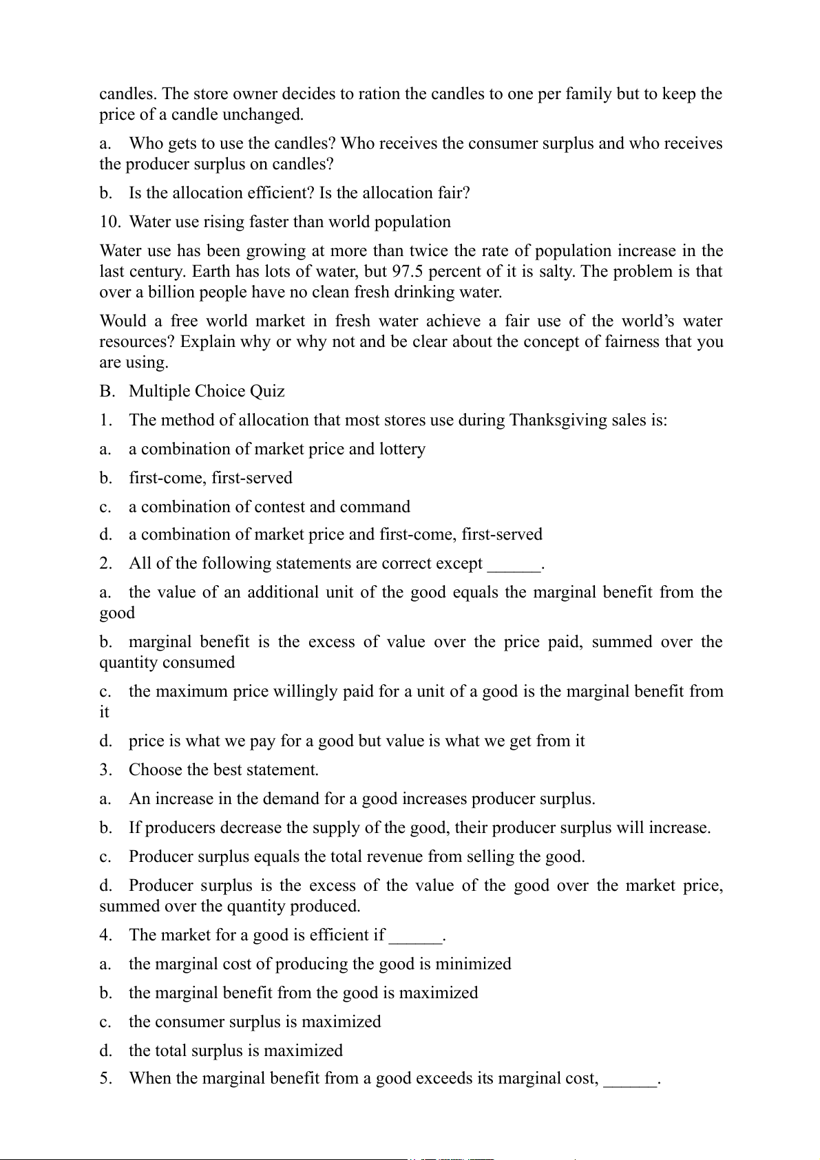 resources? Explain why or why not and be clear about the concept of fairness that you are using. B. Multiple Choice Quiz