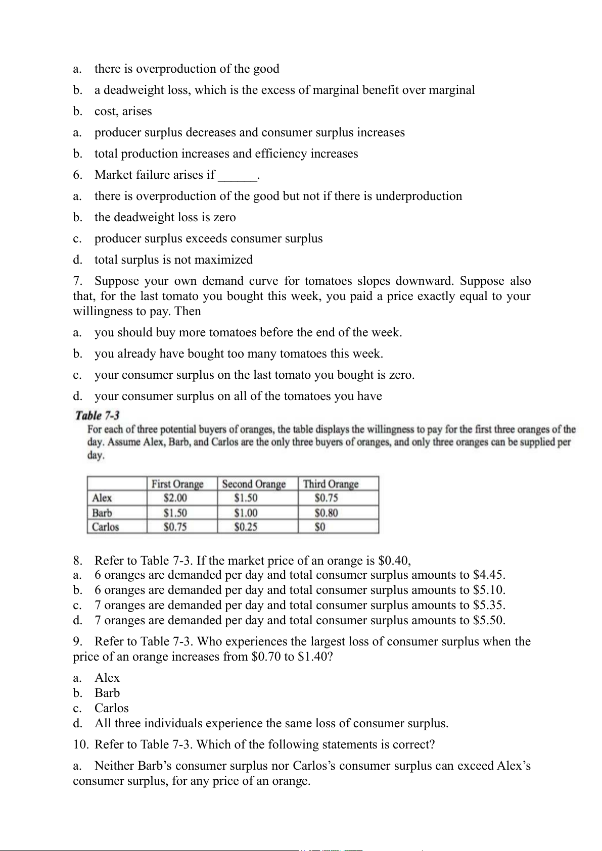 8. Refer to Table 7-3. If the market price of an orange is $0.40,