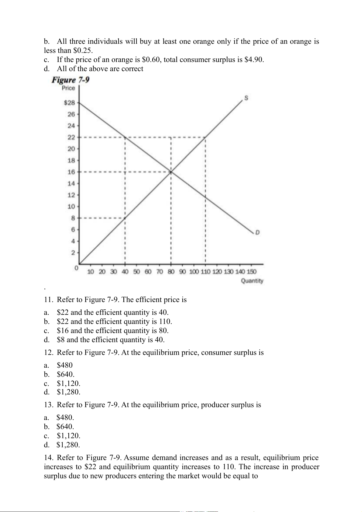 12. Refer to Figure 7-9. At the equilibrium price, consumer surplus is a. $480 b. $640. c. $1,120. d. $1,280.