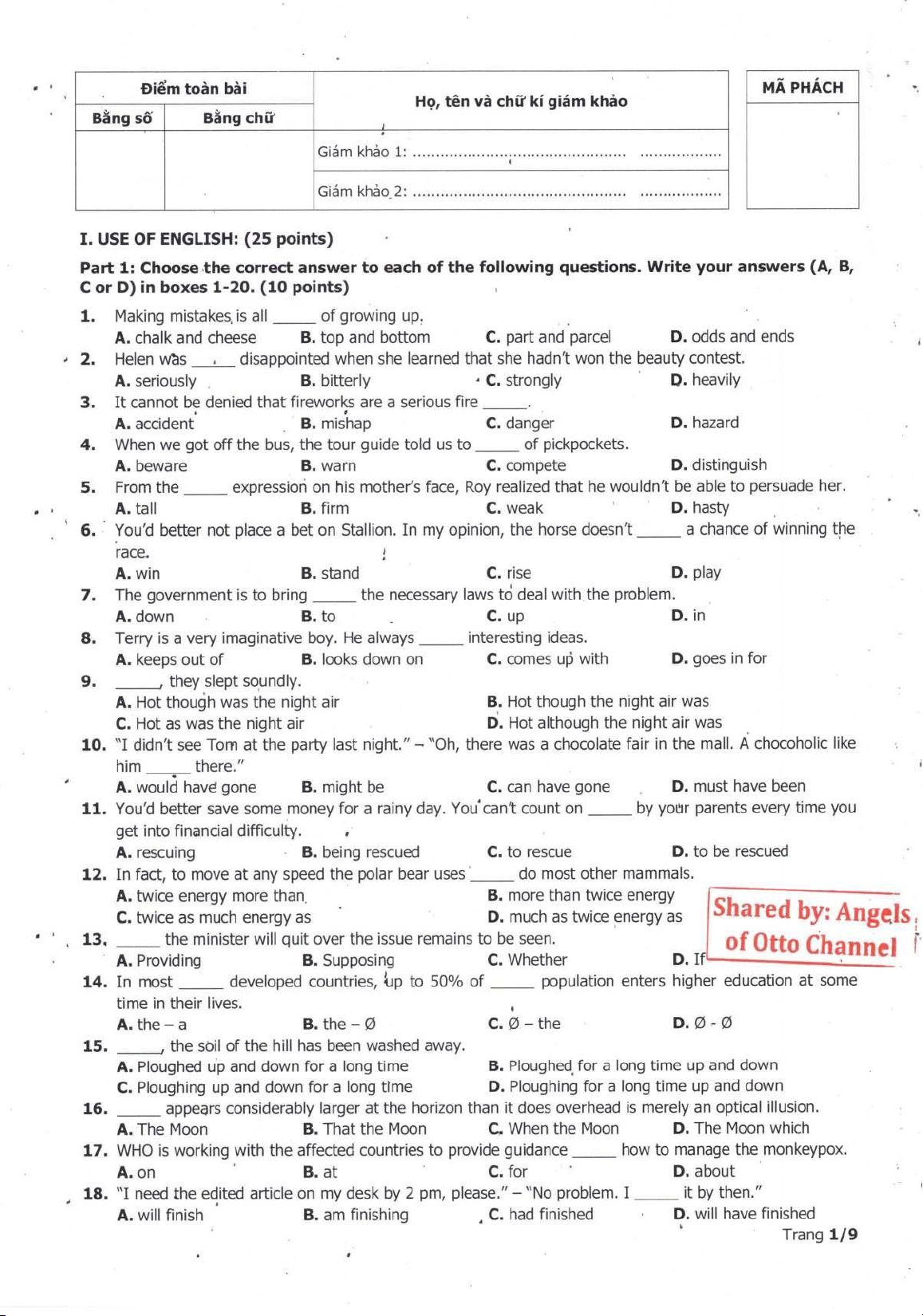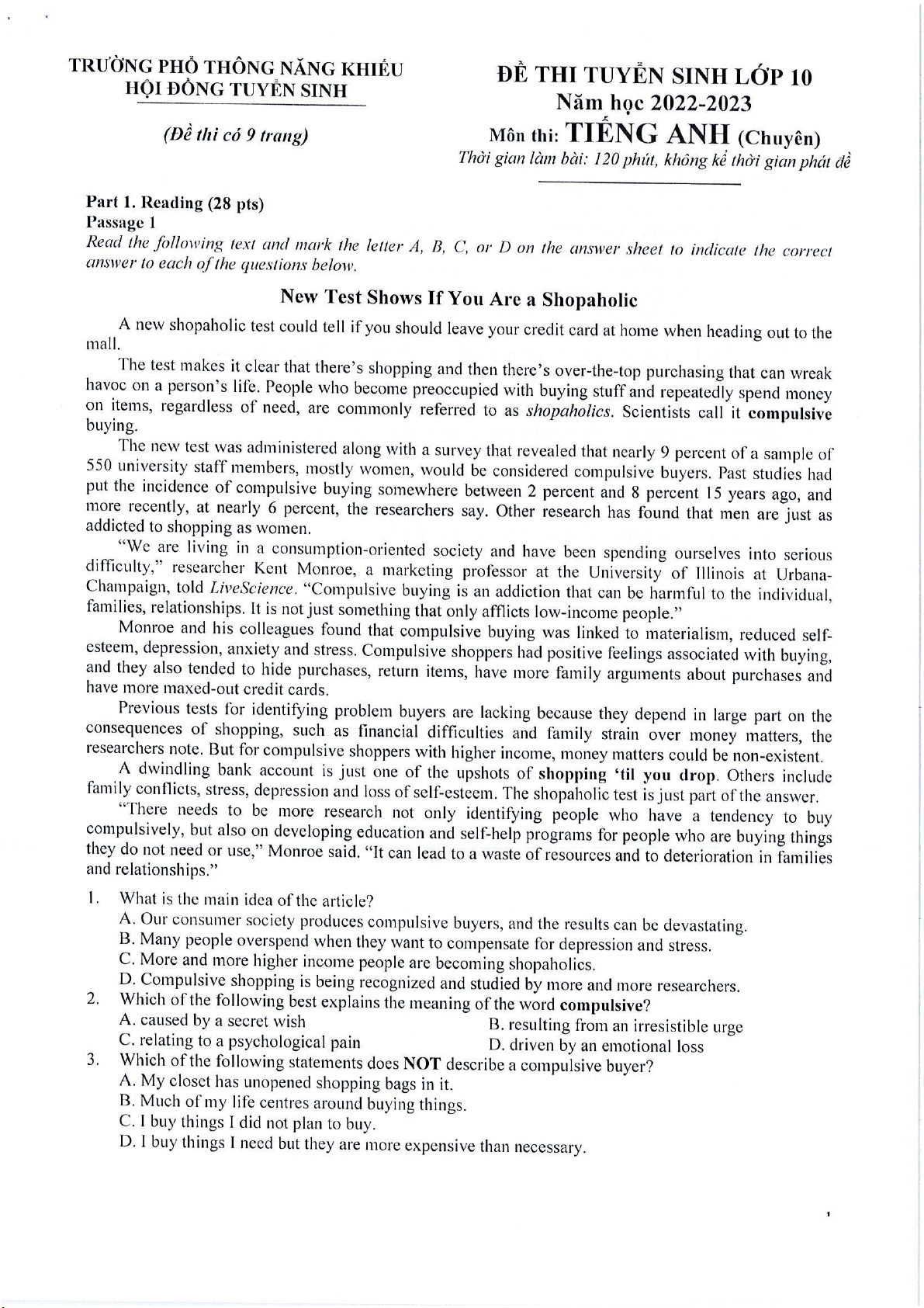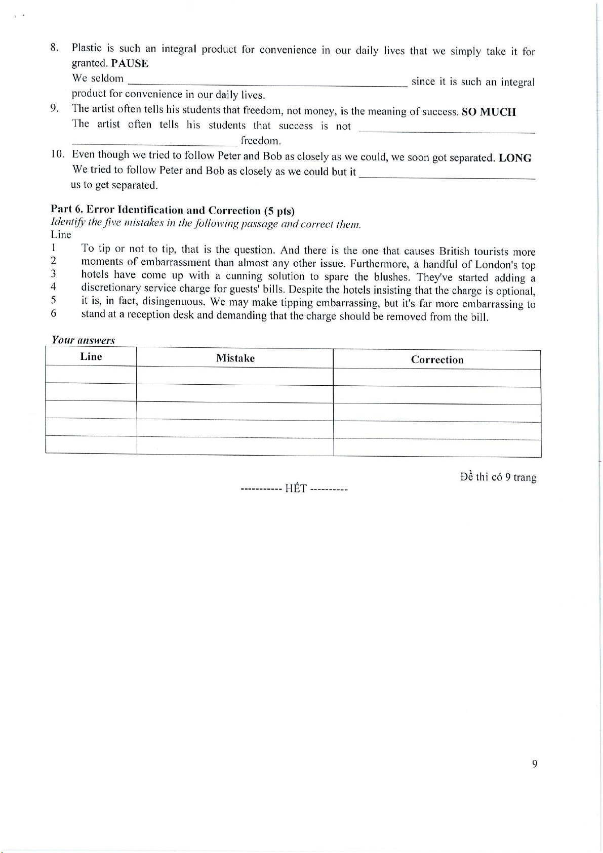 Tuyển tập đề thi chuyên HSG môn Ngôn ngữ Anh | Học viện Chính trị quốc gia Hồ Chí Minh
