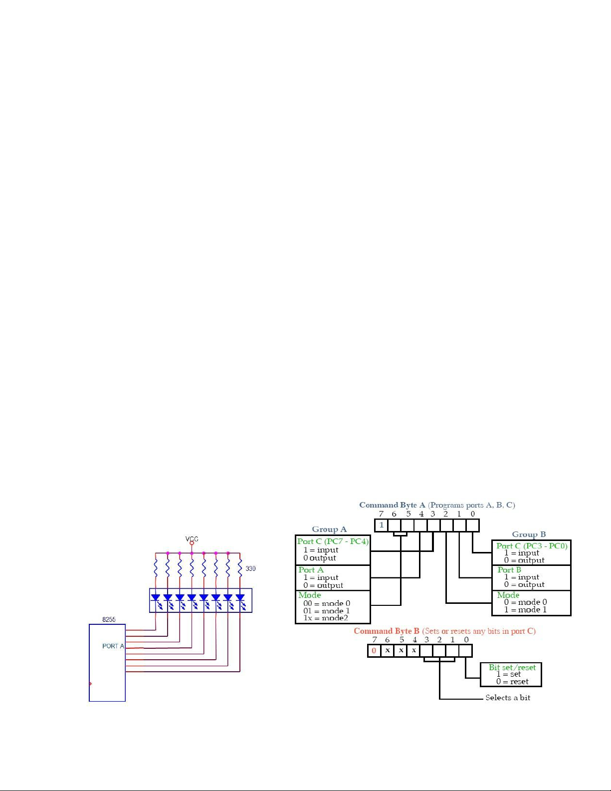 A2 và A1 của 8086. Cổng A nối với 8 LED đơn như hình vẽ. Hãy lập trình để điều khiển các LED sáng