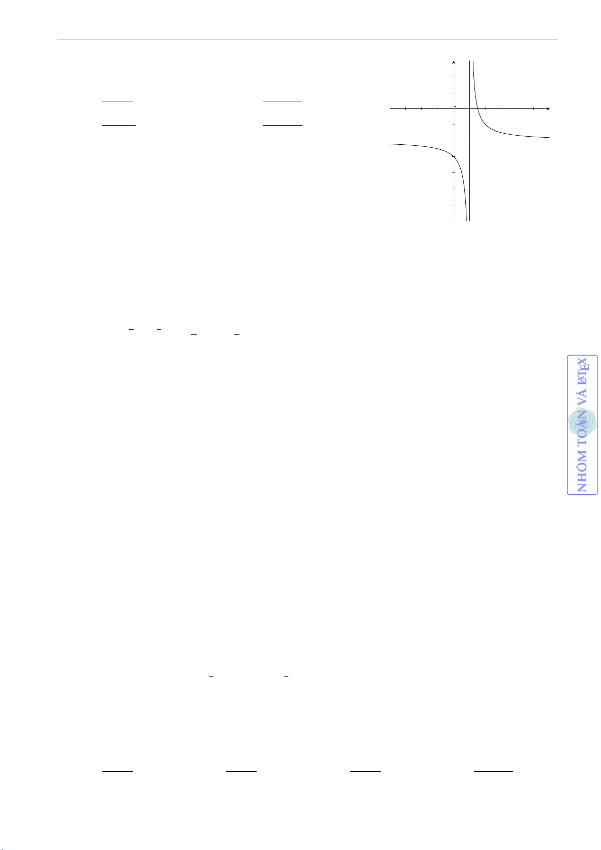Đường cong ở hình bên là đồ thị của hàm số nào trong các hàm số sau? 2x + 3 −2x − 5 A. y = . B. y = . 1 x + 1 x − 1 2x − 3 −2x + 3 x O C. y = . D. y = . −x − 1 x − 1 −2 −3