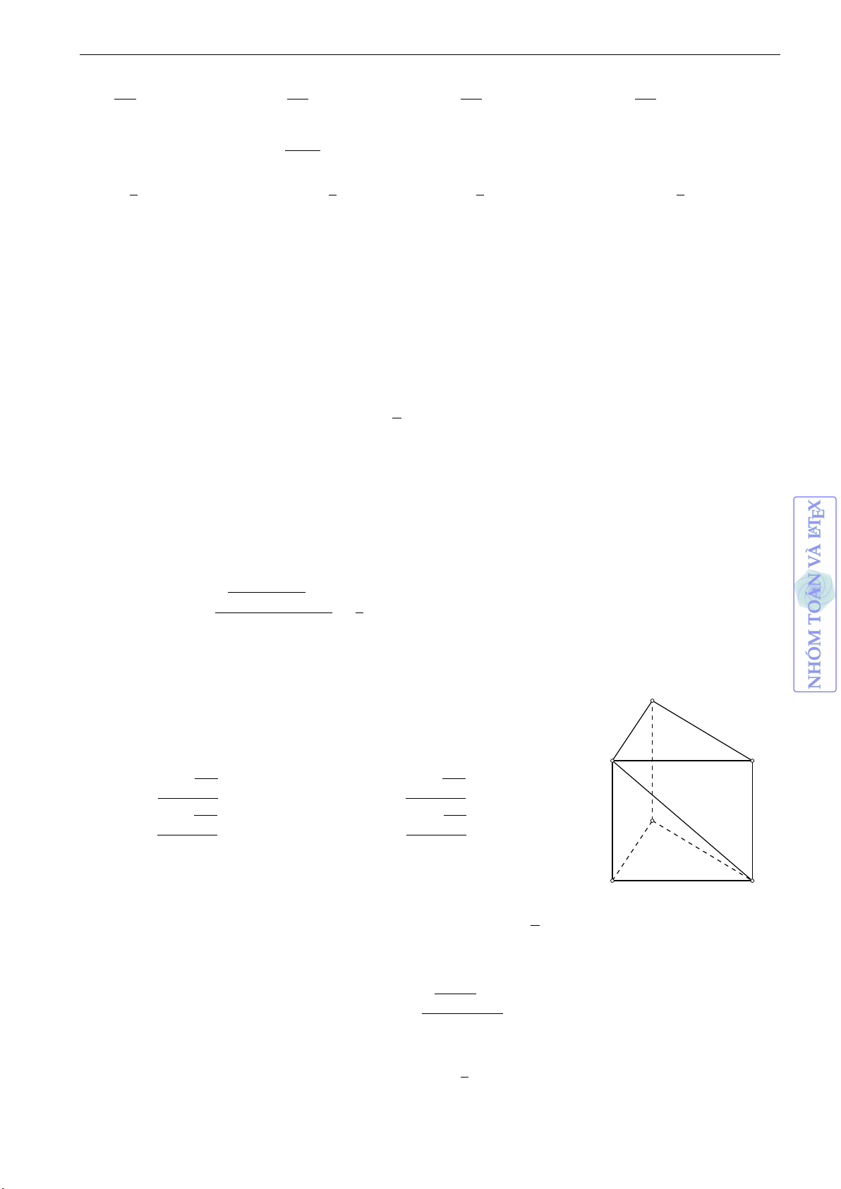 lên mặt phẳng (ABC) trùng với trọng tâm G của tam giác ABC. Biết khoảng cách giữa hai đường thẳng √ a 3 AA0 và BC bằng . Độ dài đoạn A0G là 4 √ √ 2a a 3 a a 3 A. . B. . C. . D. . 3 6 3 2 Câu 47.