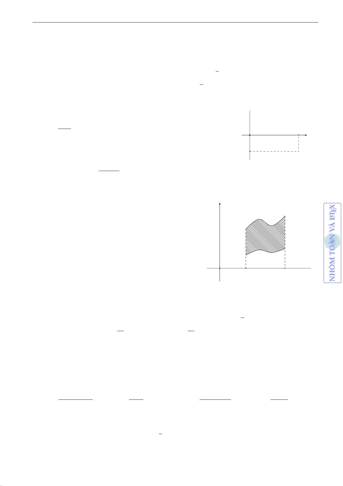 Công thức nào sau đây để tính diện tích hình phẳng S (phần y f (x) tô đậm trong hình vẽ) b b Z Z A. S = f (x) dx − g(x) dx. a a b b Z Z g(x) B. S = f (x) dx + g(x) dx. a a b b Z Z a C. S = g(x) dx − f (x) dx. O x b a a b b Z Z D. S = g(x) dx − f (x) dx. a a 4