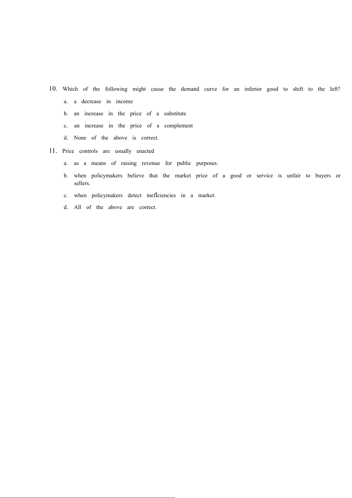 10. Which of the following might cause the demand curve for an inferior good to shift to the left? a. a decrease in income