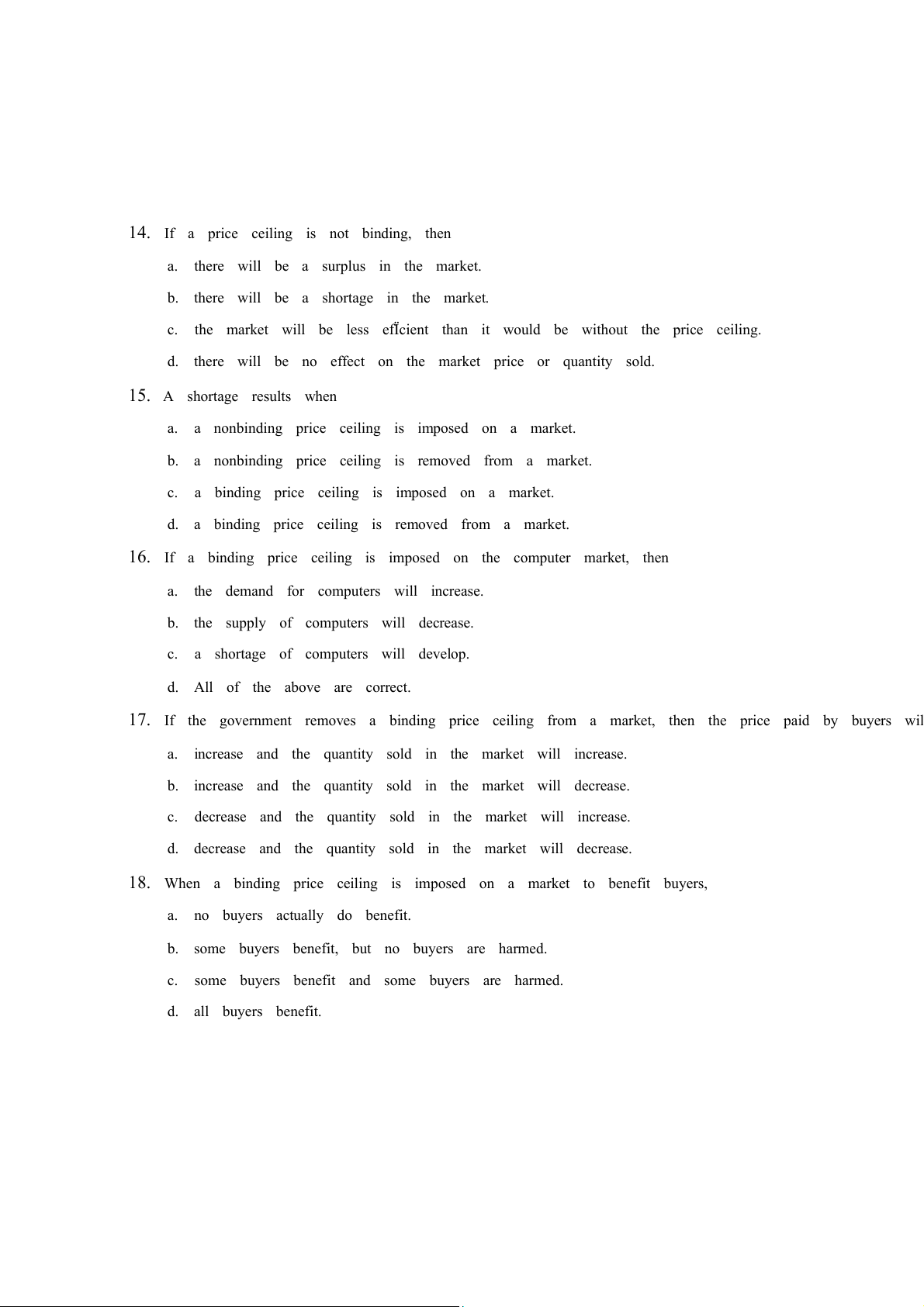 17. If the government removes a binding price ceiling from a market, then the price paid by buyers wil