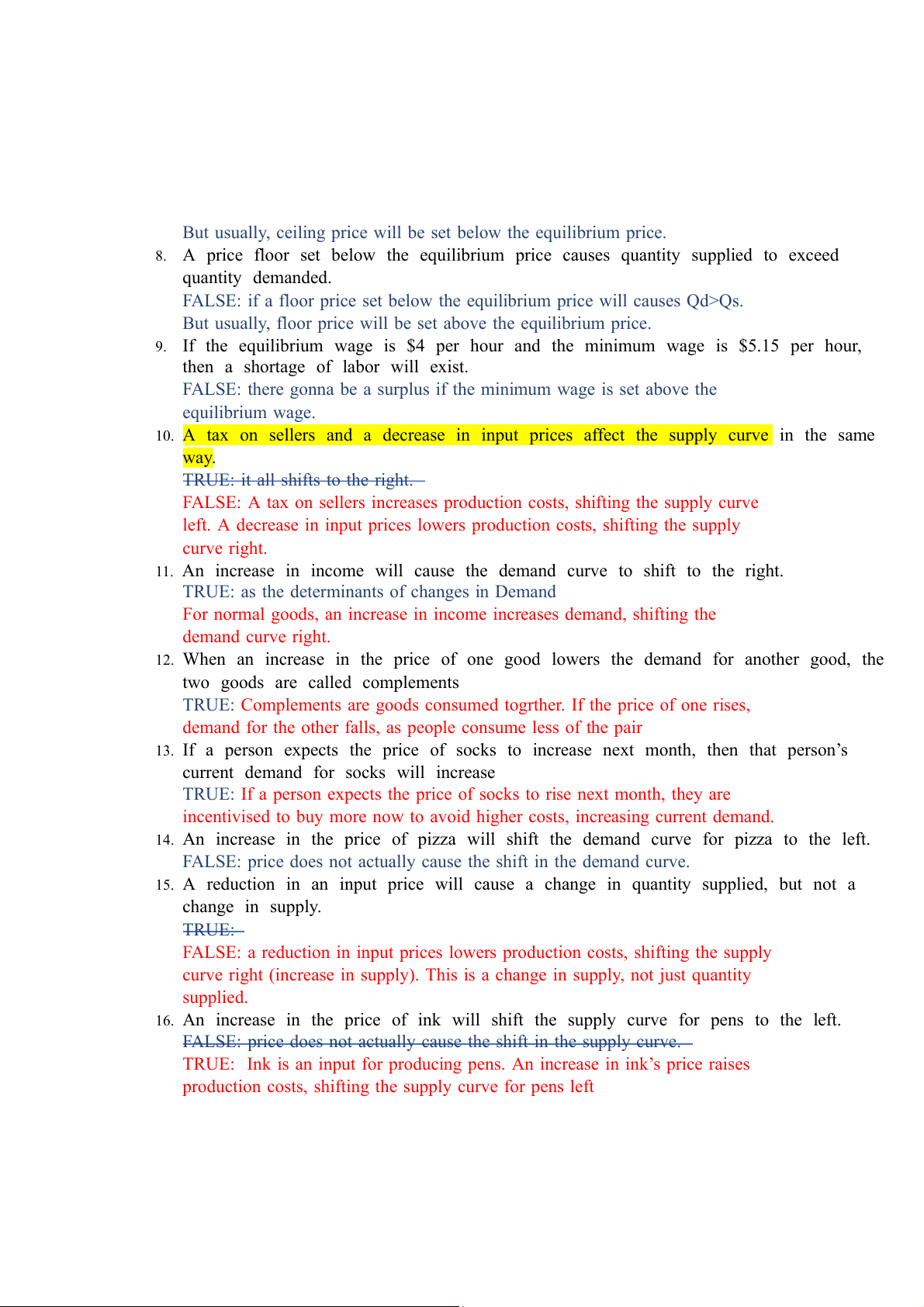 10. A tax on sellers and a decrease in input prices affect the supply curve in the same way.