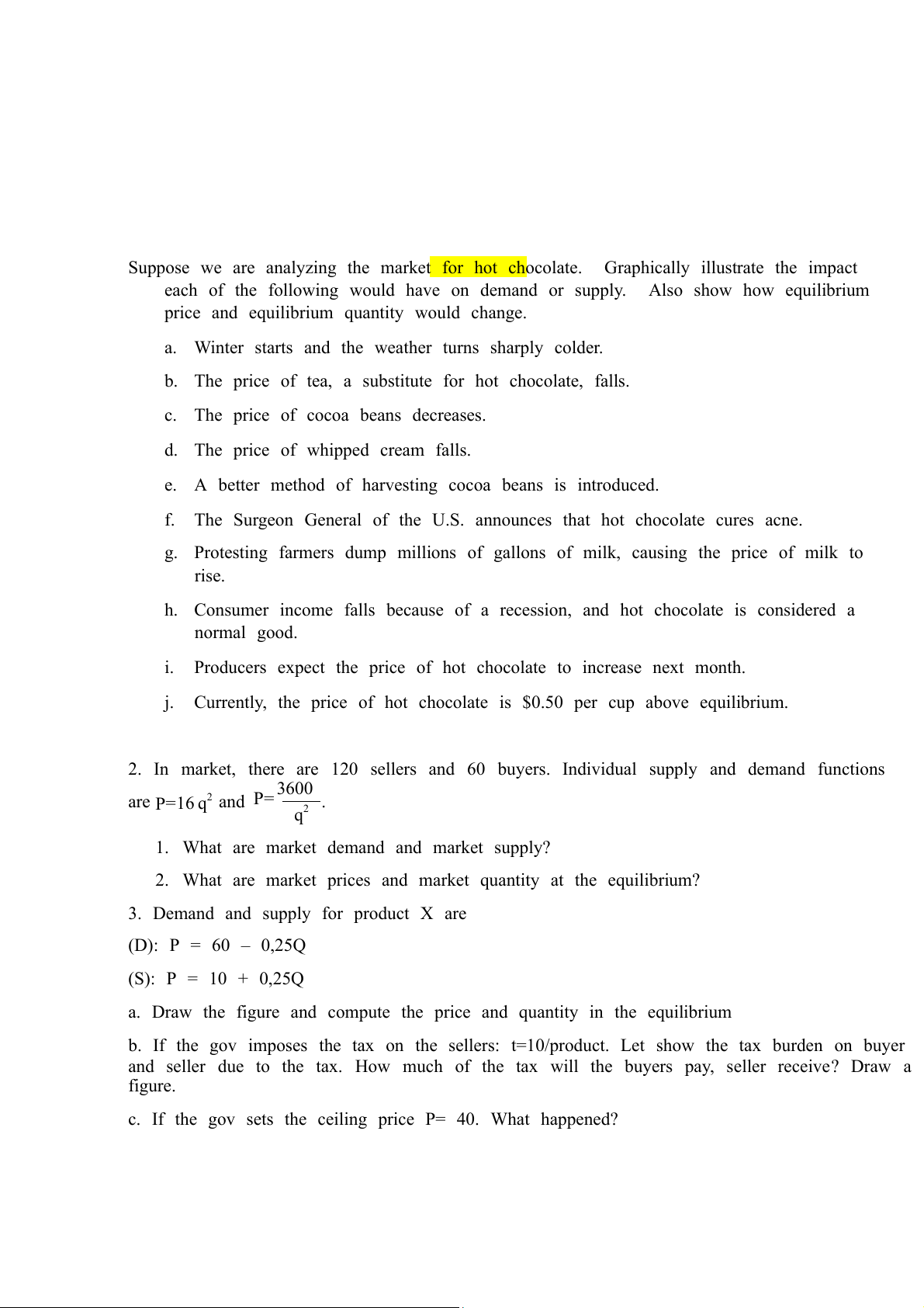 2. In market, there are 120 sellers and 60 buyers. Individual supply and demand functions 3600 are P=16 q2 and P= . q2