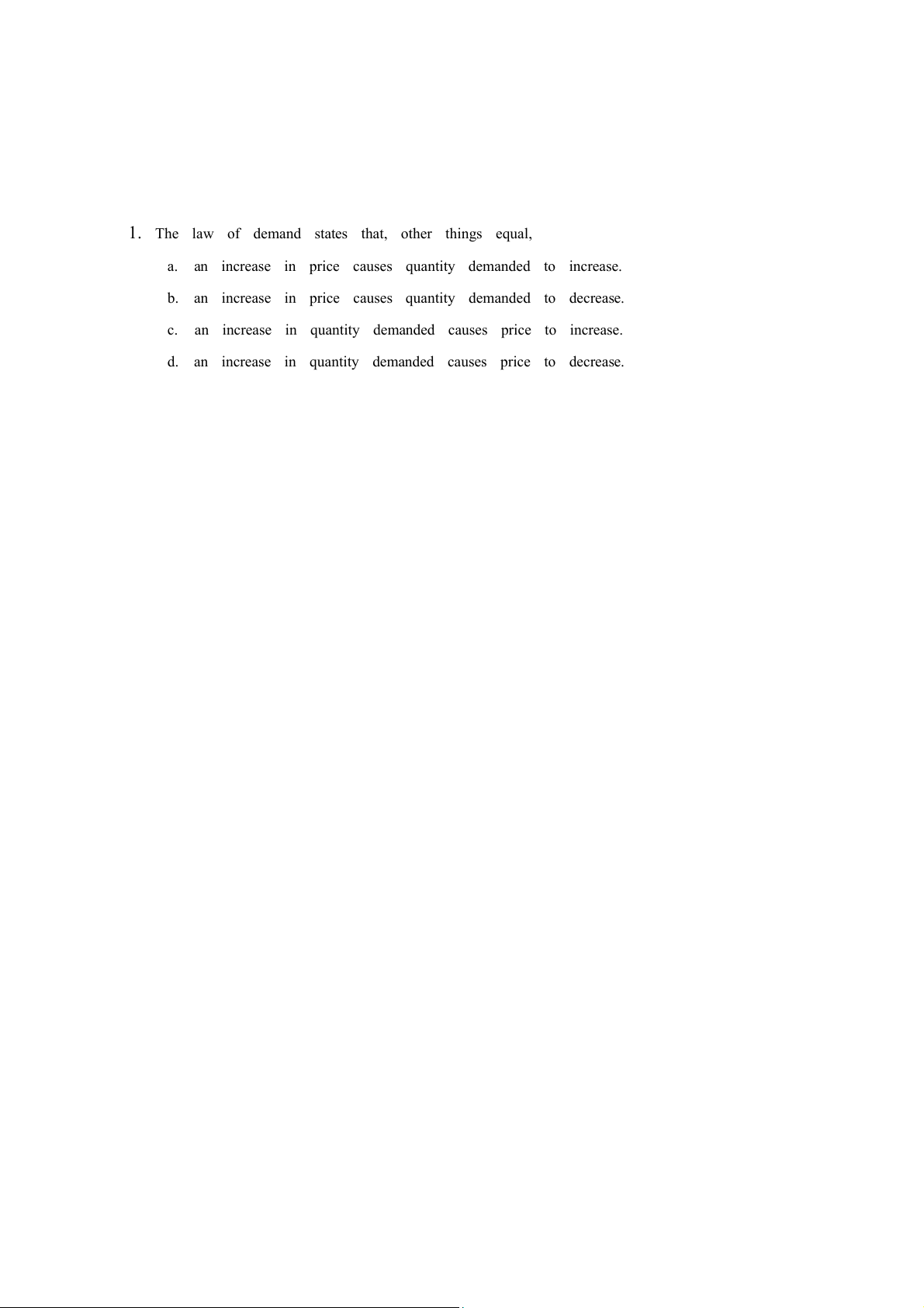 3. The law of demand states that, other things equal, when the price of a good rises,