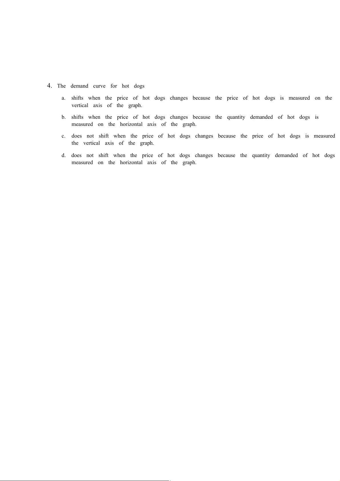 b. shifts when the price of hot dogs changes because the quantity demanded of hot dogs is