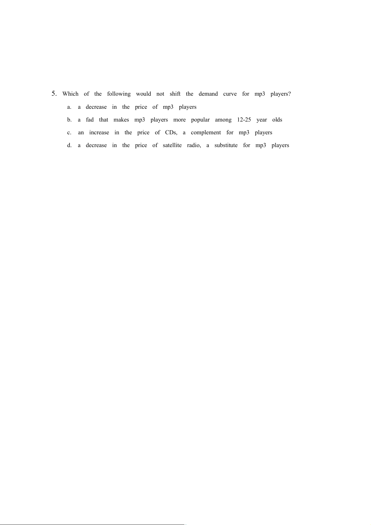 d. a decrease in the price of satellite radio, a substitute for mp3 players