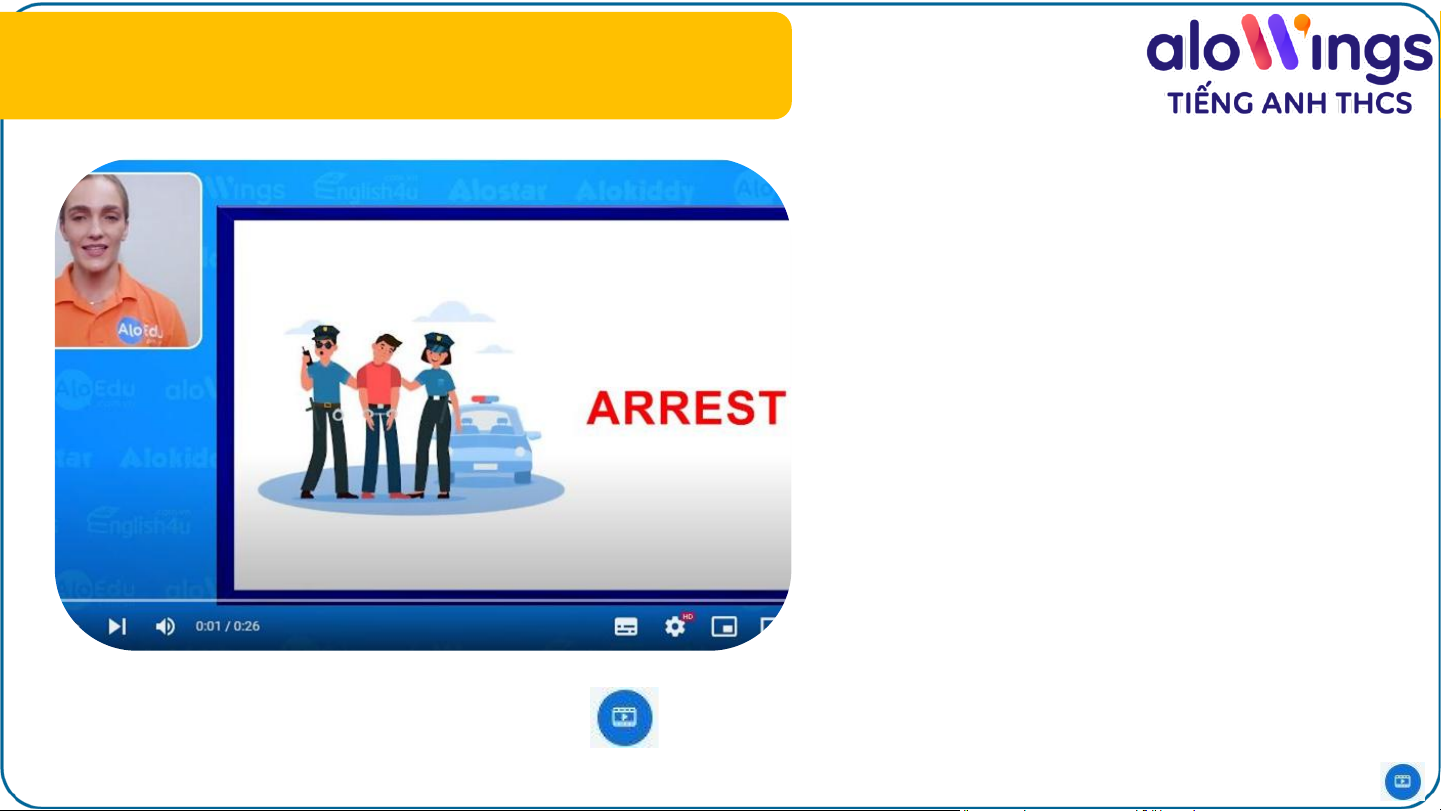 *Teacher shows the video via the symbol and asks student to repeat. 01. 01. Vocabulary Vocabulary + Speaking arrest (v) /əˈrest/