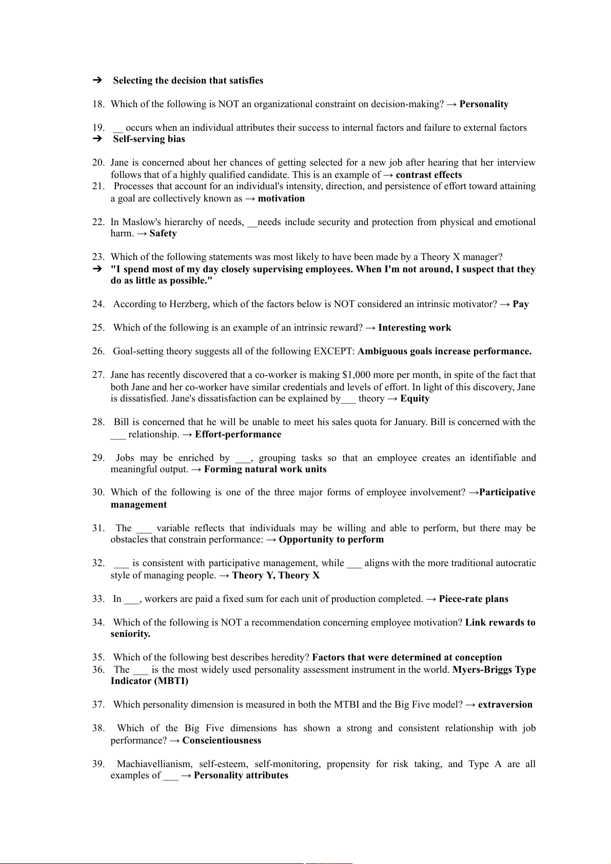 18. Which of the following is NOT an organizational constraint on decision-making? → Personality
