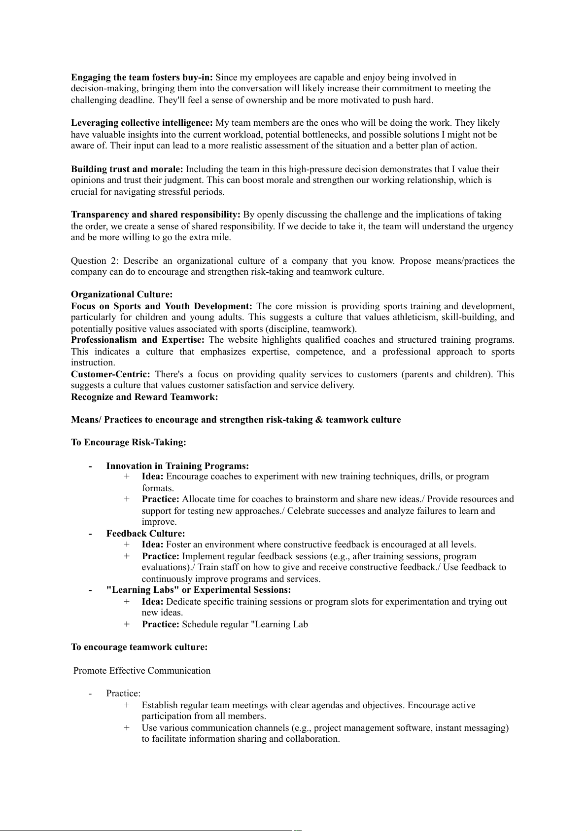 company can do to encourage and strengthen risk-taking and teamwork culture. Organizational Culture: