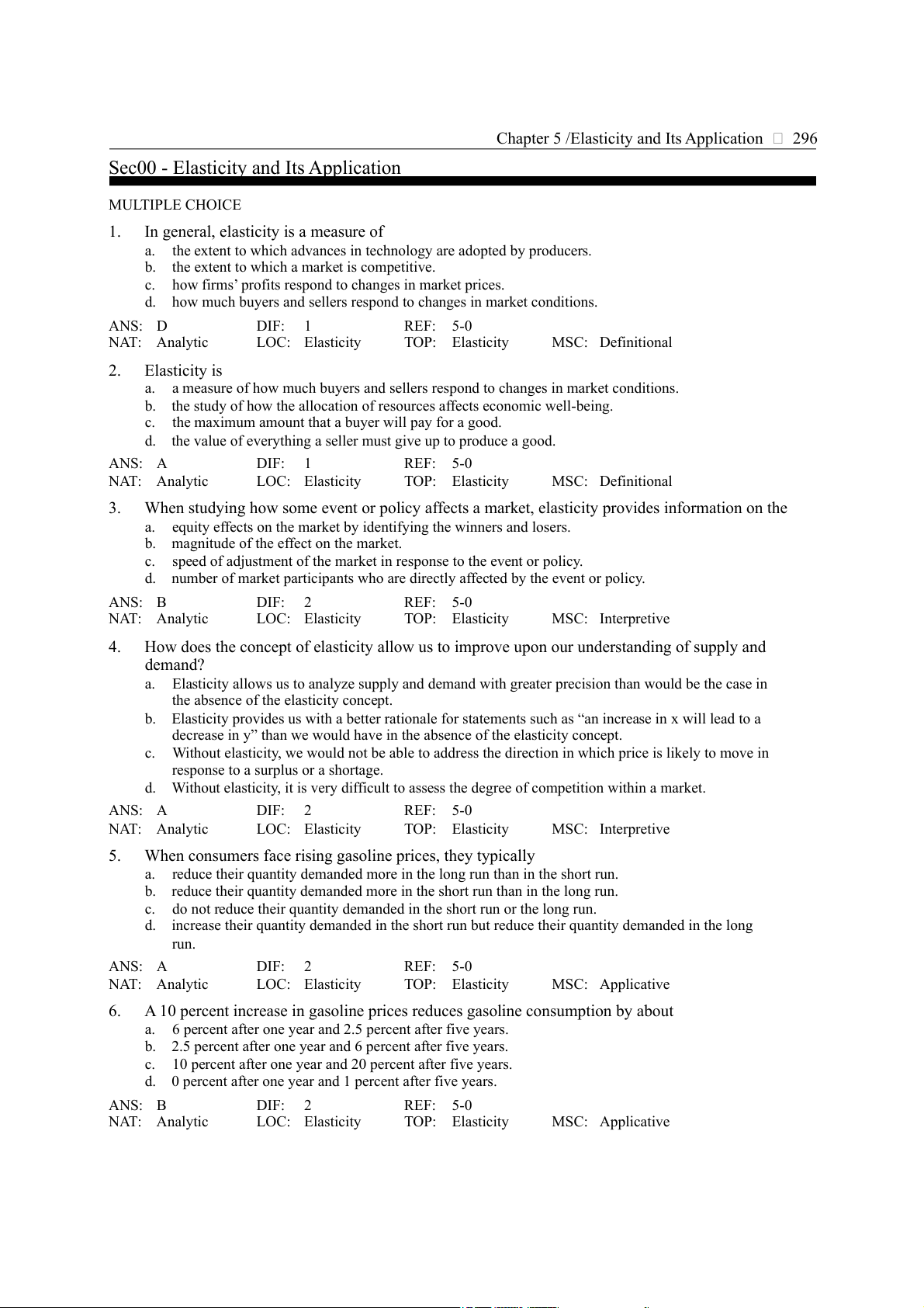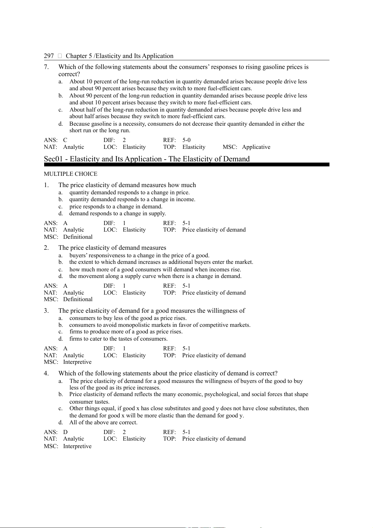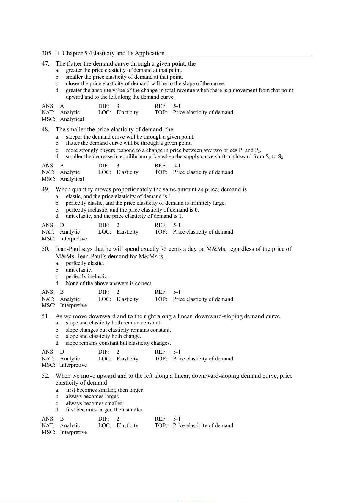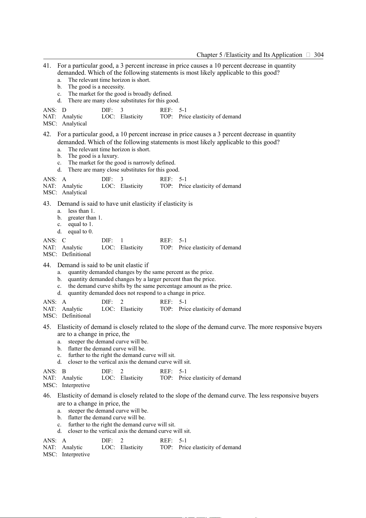 d. None of the above answers is correct. ANS: B DIF: 2 REF: 5-1 NAT: Analytic LOC: Elasticity