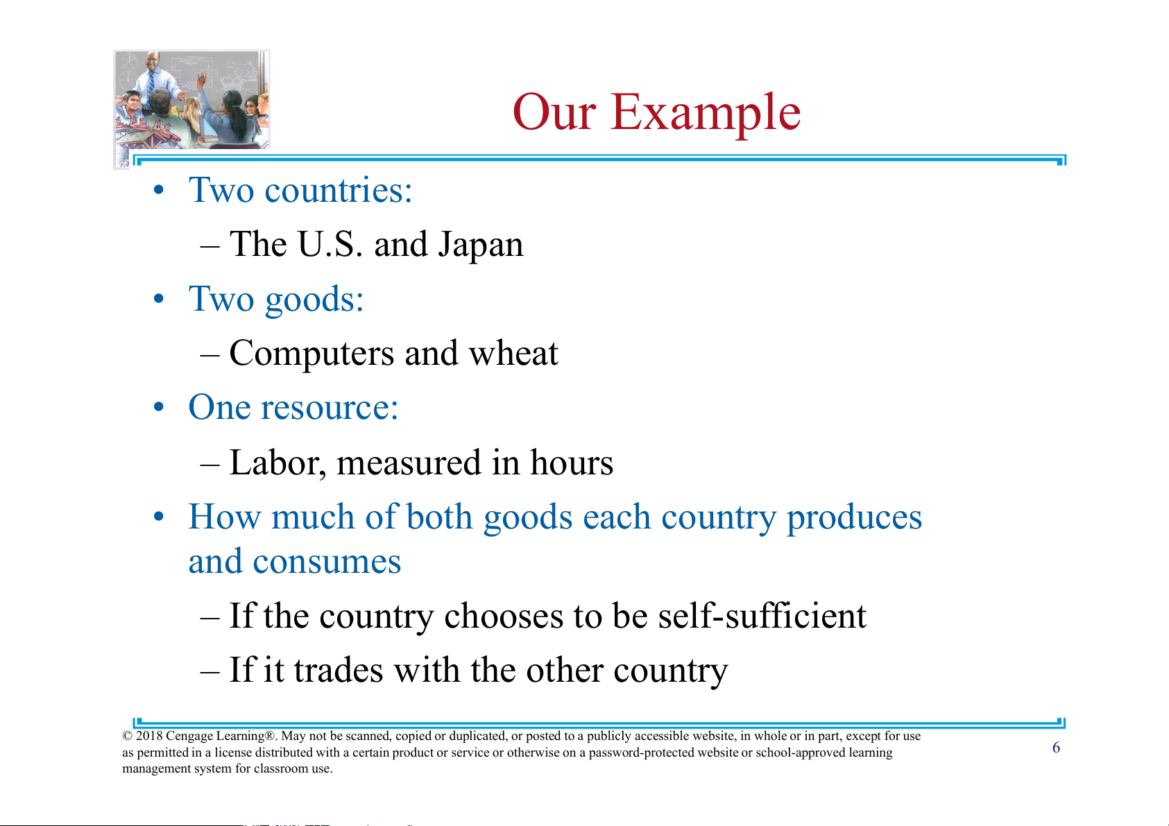 management system for classroom use. Our Example • Two countries: – The U.S. and Japan • Two goods: – Computers and wheat • One resource: – Labor, measured in hours