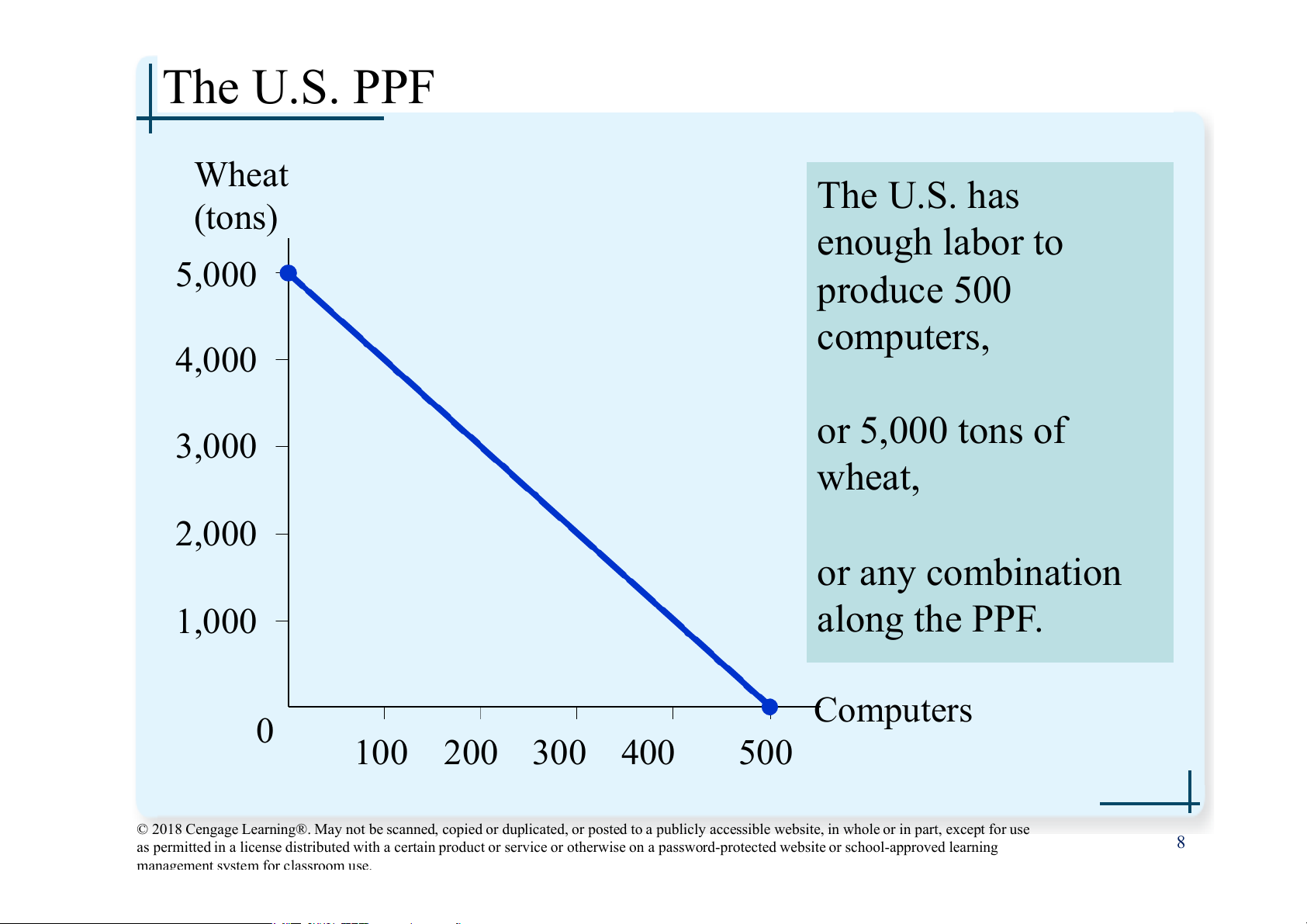 management system for classroom use. The U.S. PPF Wheat The U.S. has (tons) enough labor to 5,000 produce 500 computers, 4,000 or 5,000 tons of 3,000 wheat, 2,000 or any combination 1,000 along the PPF. Computers 0 100 200 300 400 500