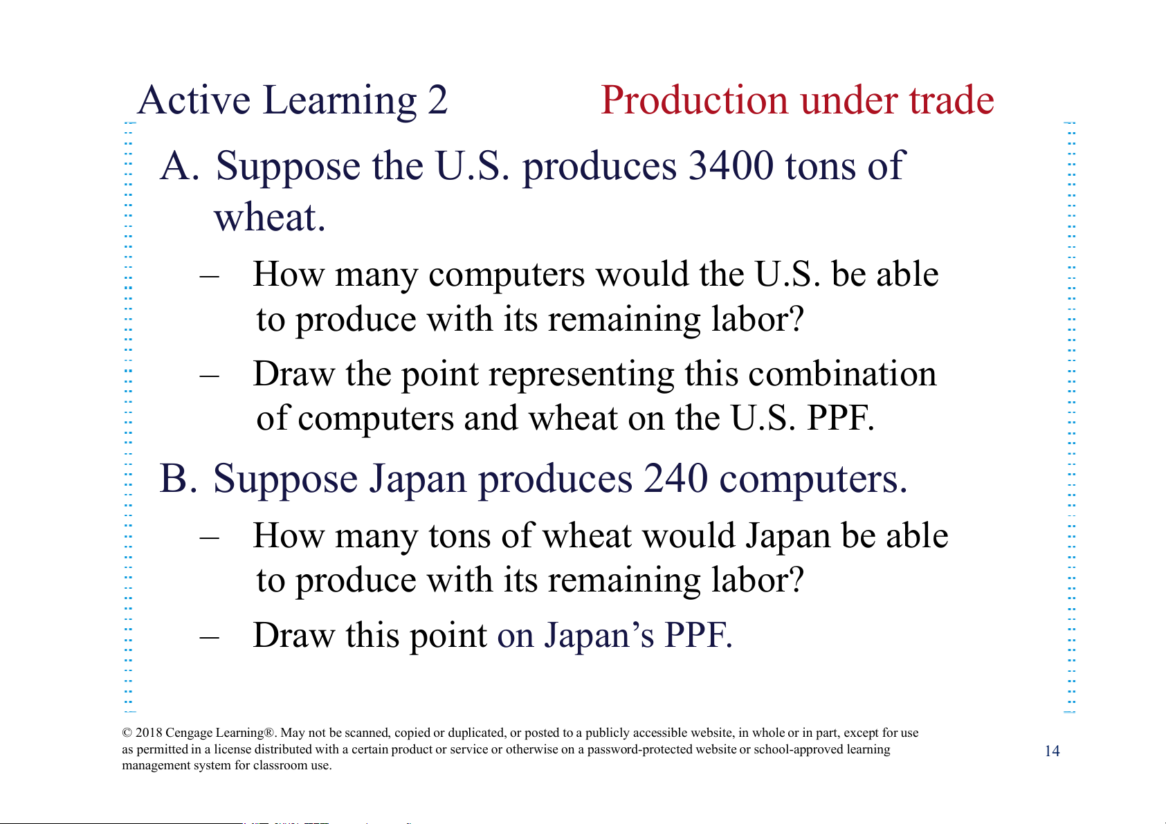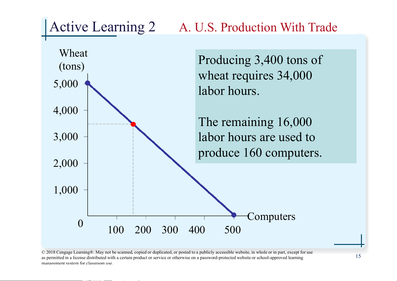 management system for classroom use. Active Learning 2 A. U.S. Production With Trade Wheat Producing 3,400 tons of (tons) wheat requires 34,000 5,000 labor hours. 4,000 The remaining 16,000 3,000 labor hours are used to produce 160 computers. 2,000 1,000 Computers 0 100 200 300 400 500