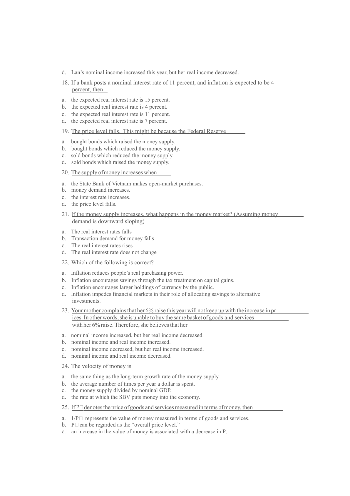 d. nominal income and real income decreased. 24. The velocity of money is