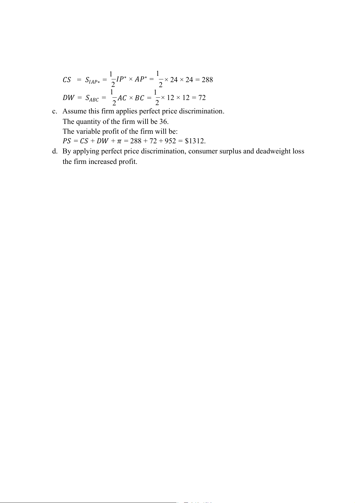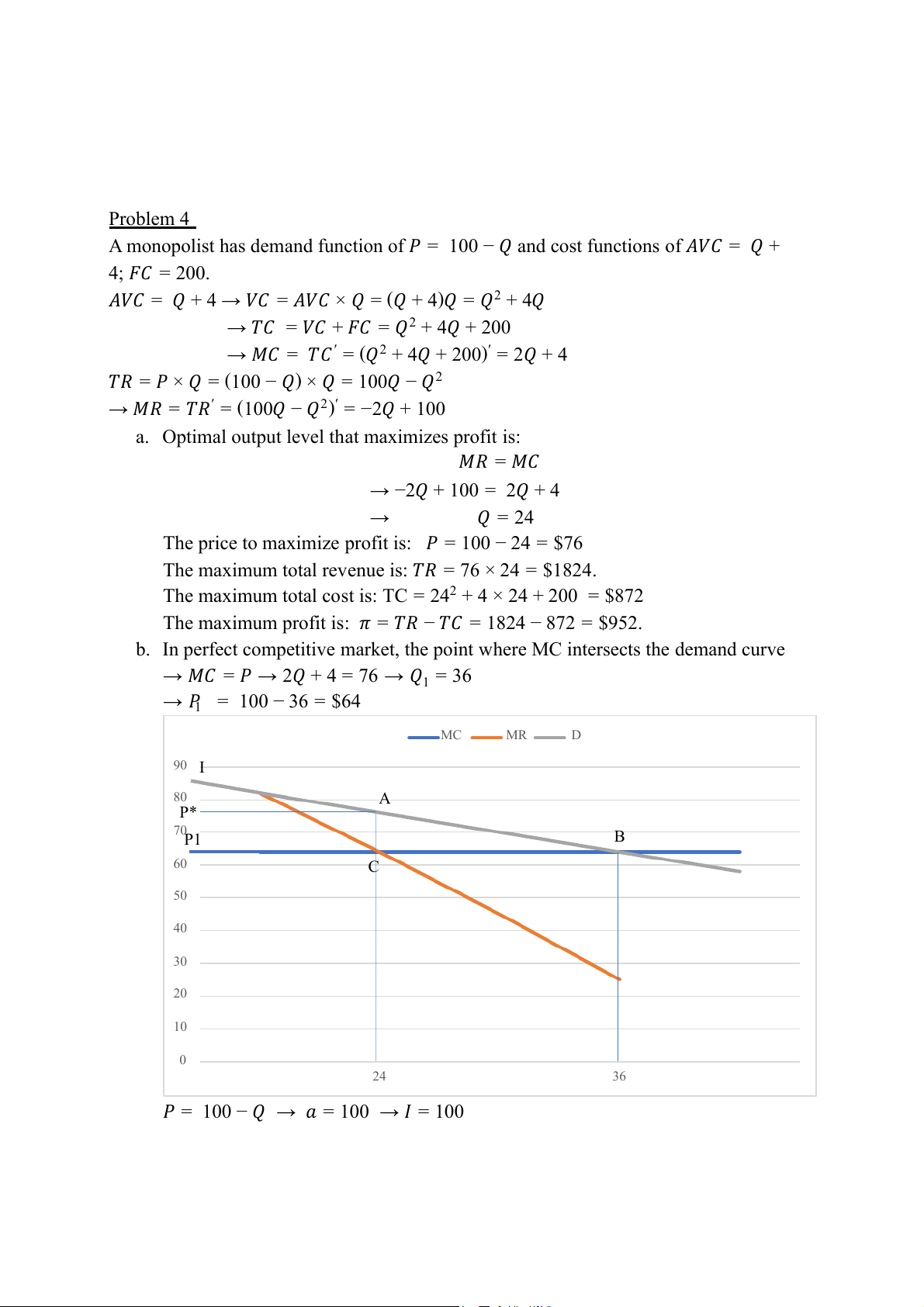 Dead weight-loss created by this firm is 𝐷𝑊 = 1 𝐴𝐸 × 𝐵𝐸 = 1 × 4 × 4 = 8 2 2 Problem 4