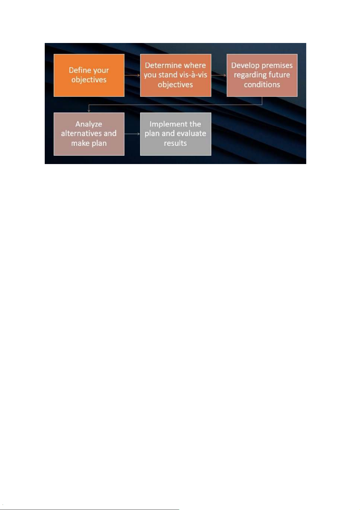 -Planning is the process of setÝng performance objectives and determining what