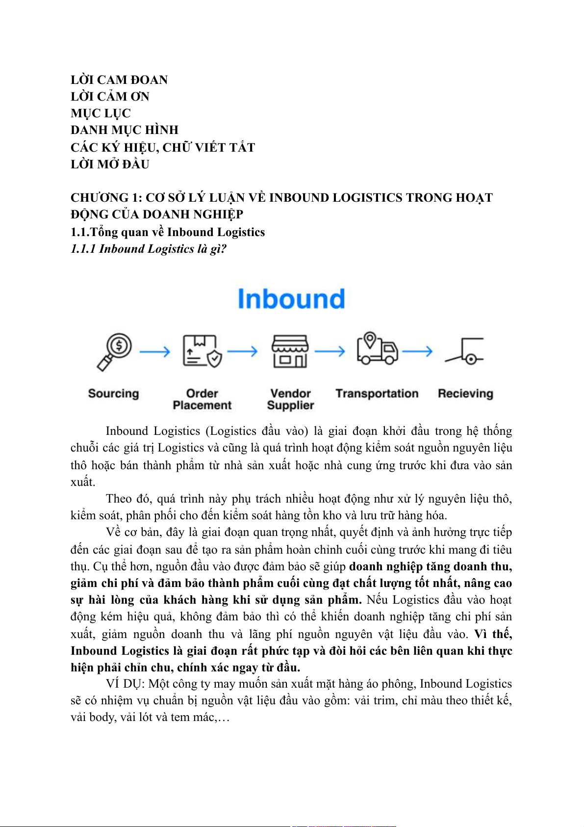CHƯƠNG 1: CƠ SỞ LÝ LUẬN VỀ INBOUND LOGISTICS TRONG HOẠT ĐỘNG CỦA DOANH NGHIỆP