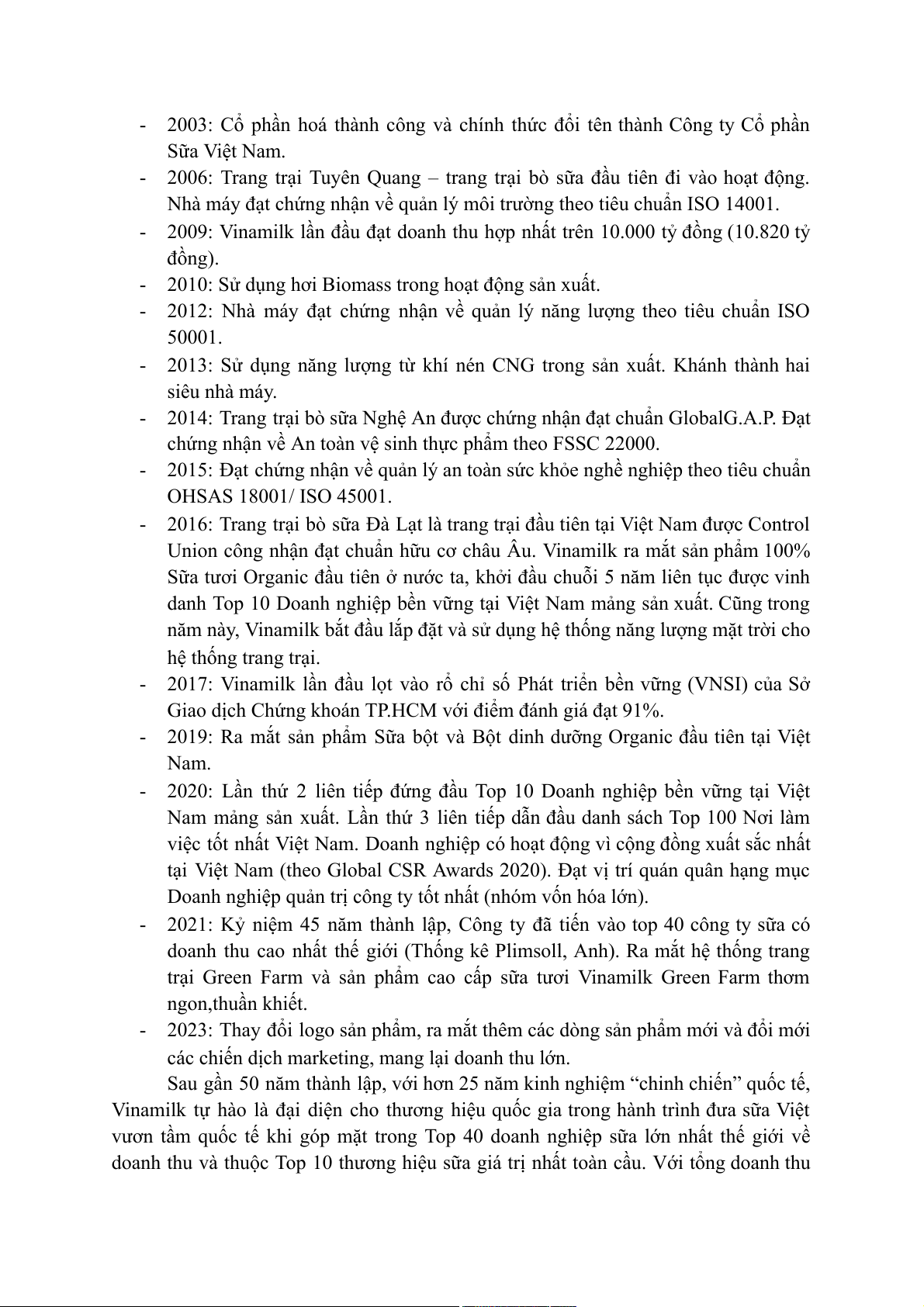 thế giới cũng như Công ty Vinamilk. 2. Hoogwegt