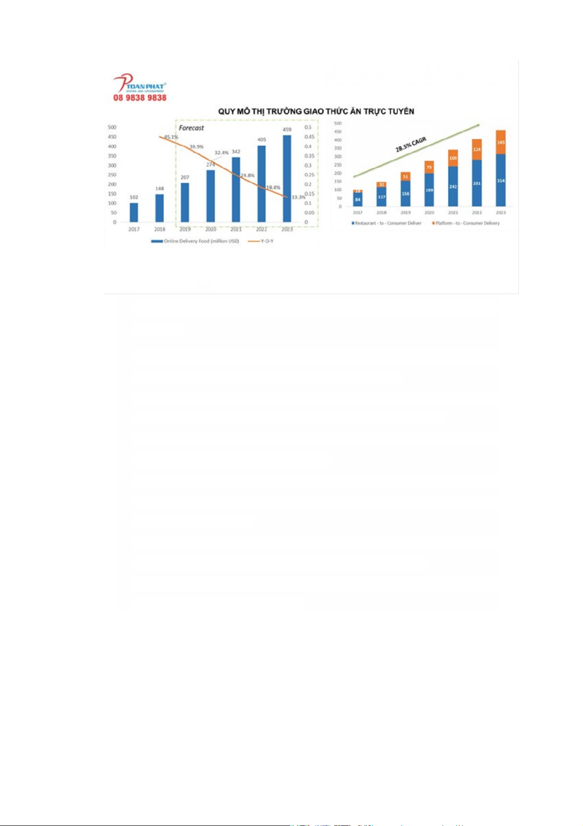 trường giao thức ăn trực tuyến Việt Nam năm 2018 là 148 triệu USD và có