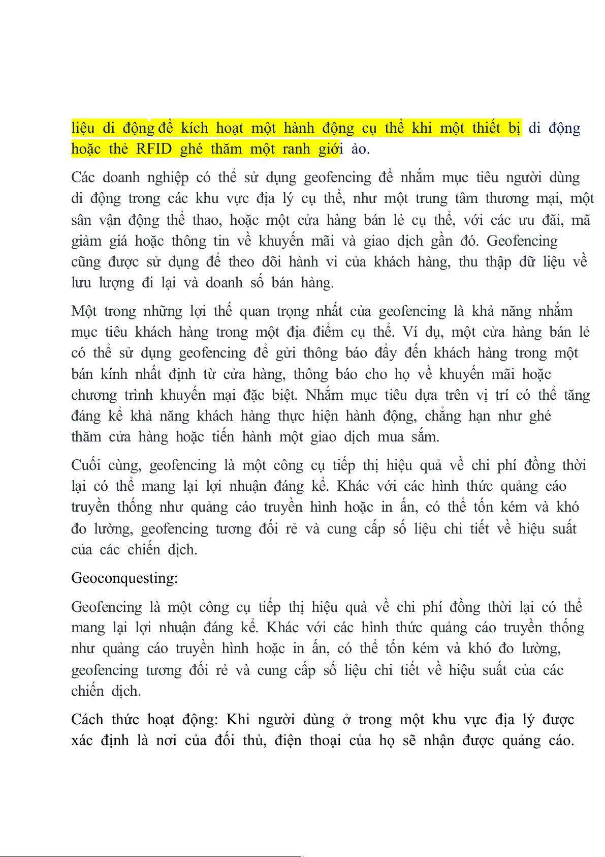 đo lường, geofencing tương đối rẻ và cung cấp số liệu chi tiết về hiệu suất của các chiến dịch. Geo conquesting: