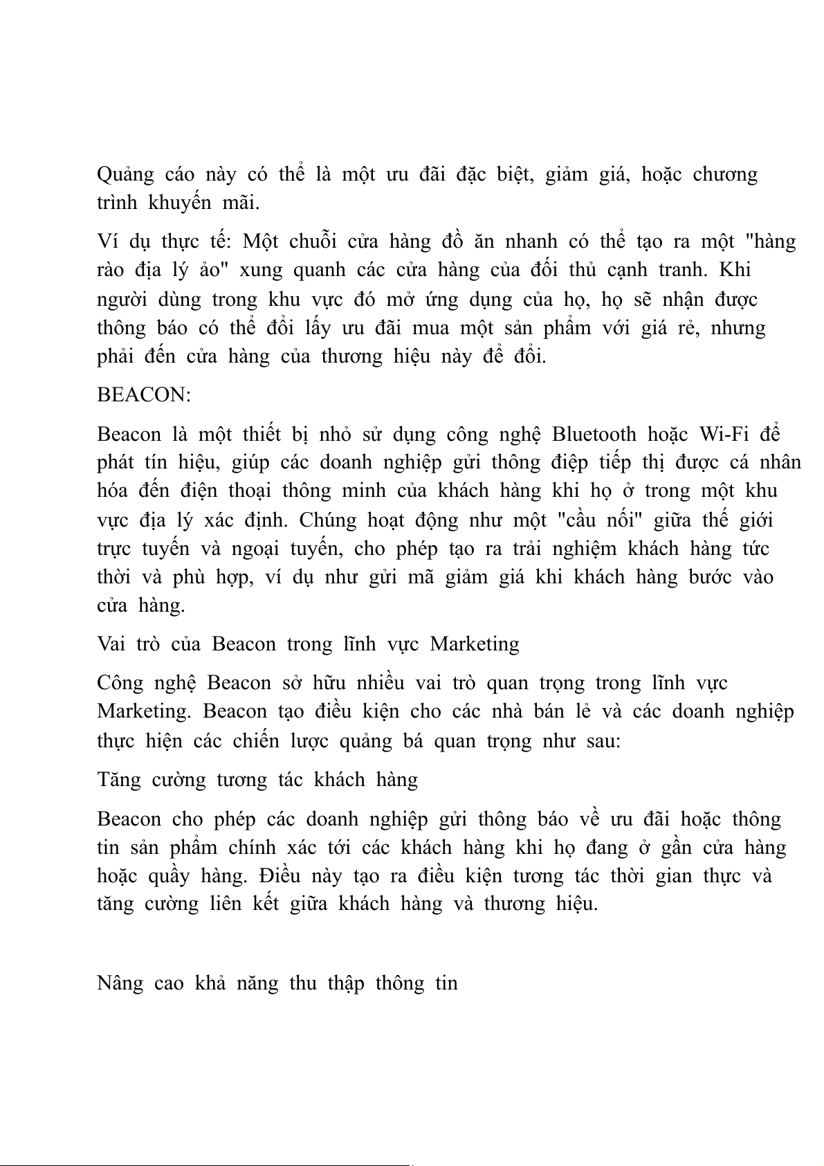 Beacon cho phép các doanh nghiệp gửi thông báo về ưu đãi hoặc thông