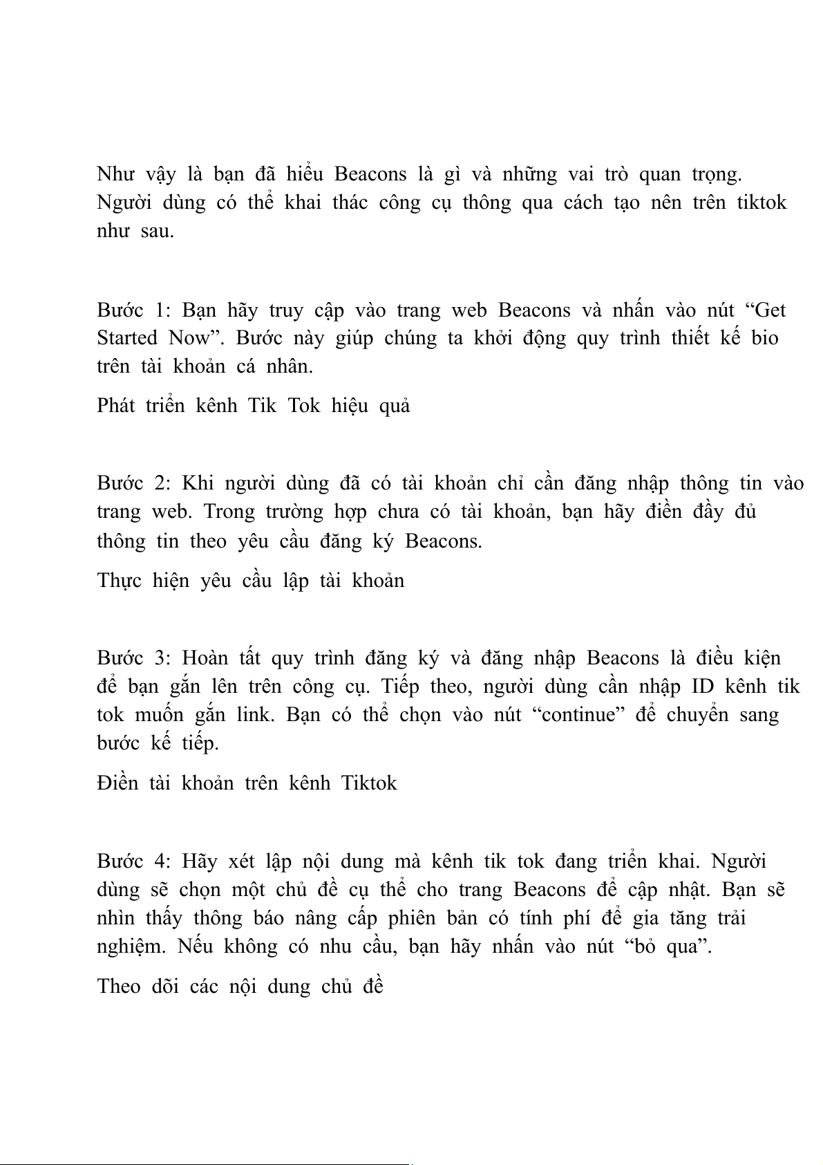 Hướng dẫn quy trình dùng Beacons trên tiktok
