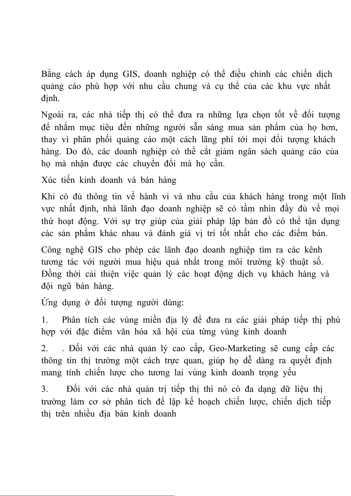 . Đối với các nhà quản lý cao cấp, Geo-Marketing sẽ cung cấp các