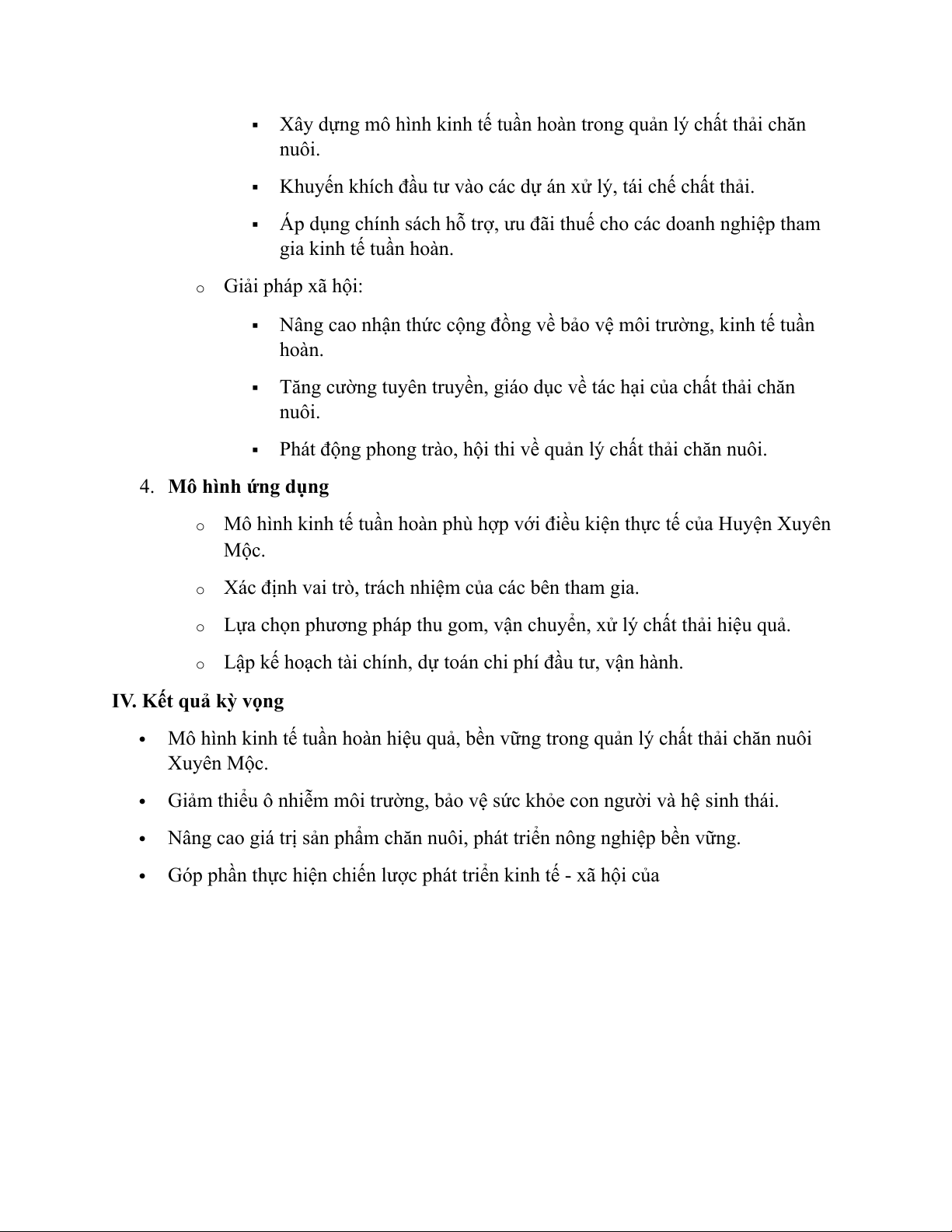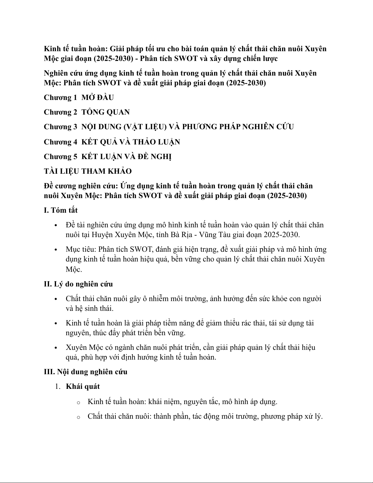Đề cương nghiên cứu: Ứng dụng kinh tế tuần hoàn trong quản lý chất thải chăn